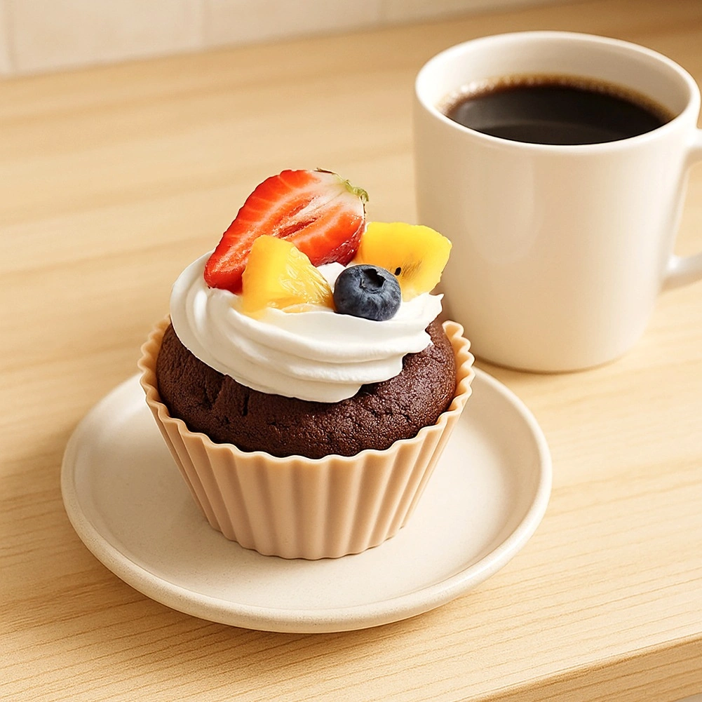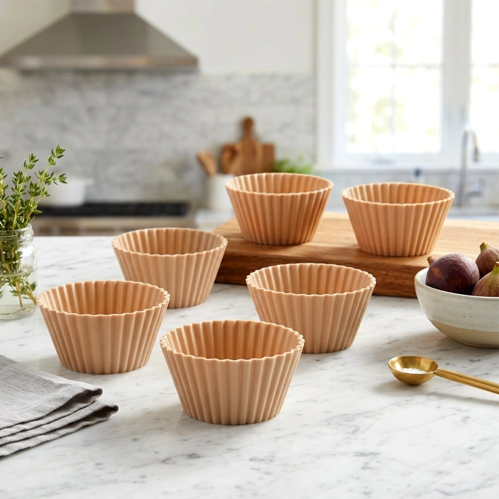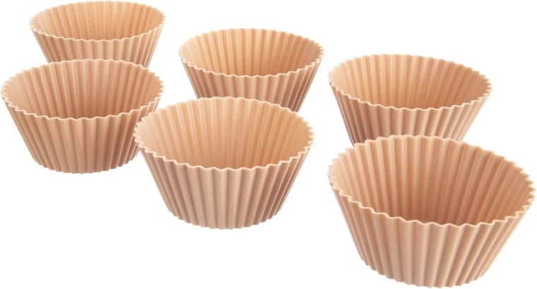Zestaw zawiera 6 wysokiej jakości silikonowych foremek o górnej średnicy 6,5 cm, średnicy dna 5 cm i wysokości 3 cm. Falowane brzegi nadają estetyczny wygląd i gwarantują idealny kształt muffinki. Silikon świetnie przewodzi ciepło, dzięki czemu ciasto piecze się równomiernie bez konieczności natłuszczania czy oprószania mąką.
