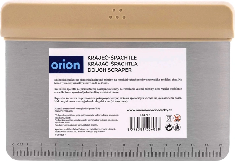 Ta uniwersalna skrobka/szpatuła łączy funkcje noża do ciasta, podbieraka i łopatki. Od wygładzania kremów po porcjowanie ciasta – stalowe ostrze z wyraźną skalą umożliwia szybką i precyzyjną pracę bez dodatkowych akcesoriów. Nadaje się także do siekania orzechów i warzyw.