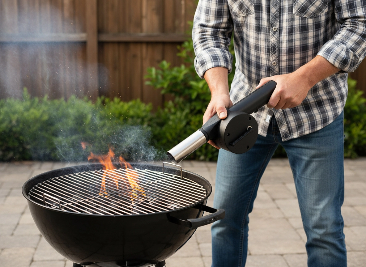 Rozpal węgiel szybko i bez wysiłku dzięki tej kompaktowej, ręcznej dmuchawie do grilla. Jest lekka, łatwa w obsłudze i skutecznie rozżarza żar bez baterii i kabli – idealna do ogrodu i na kemping.