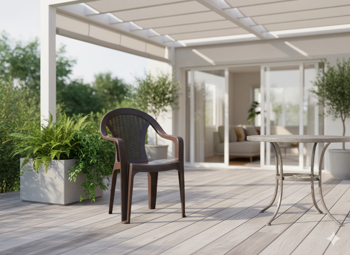 Stwórz przytulne miejsce do siedzenia w ogrodzie, na tarasie lub balkonie. To brązowe krzesło z tworzywa łączy klasyczny design z wytrzymałymi materiałami i codziennym komfortem. Dzięki solidnej, czteronożnej konstrukcji jest stabilne, a jednocześnie pozostaje lekkie i łatwe do przenoszenia.