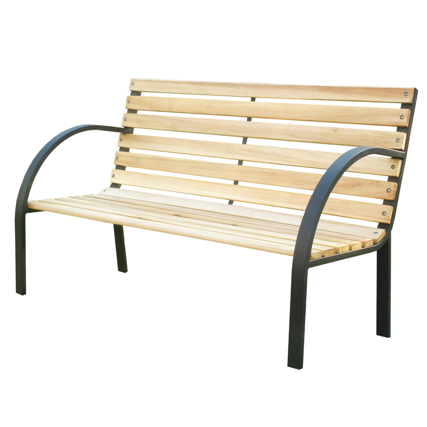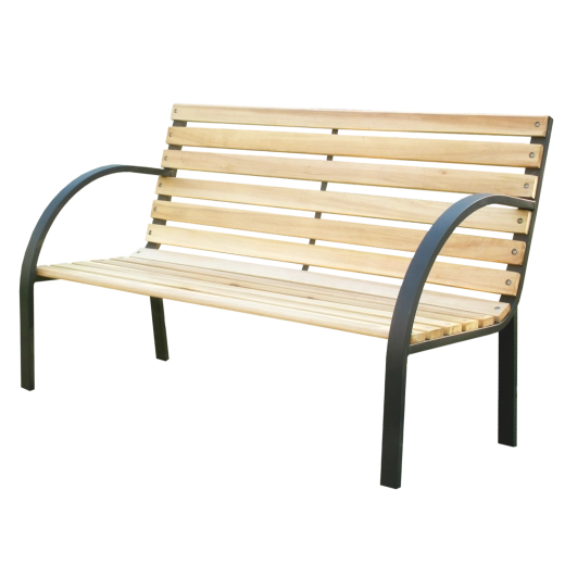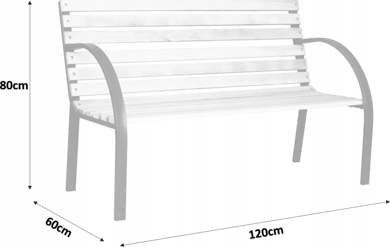 Wyprofilowane metalowe podłokietniki zwiększają komfort siedzenia, a długość 120 cm jest idealna dla dwóch osób do ogrodu, na taras lub nad oczko wodne.