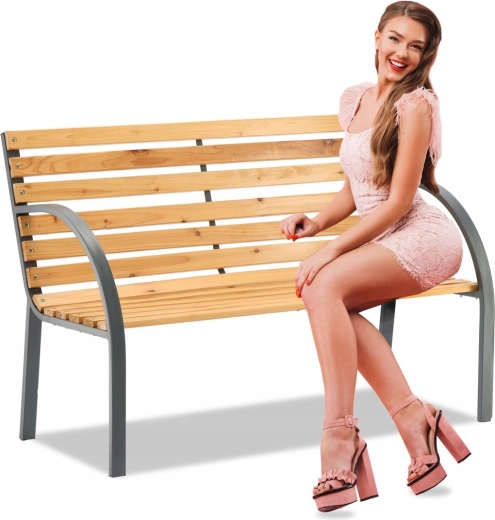 Ta ławka ogrodowa o wymiarach 120 × 60 × 82 cm łączy naturalny wygląd drewna z solidną stabilnością stali. Dzięki drewnianym listwom impregnowanym ciśnieniowo i lakierowanym oraz szarej metalowej ramie, ławka jest odporna na warunki pogodowe i codzienne użytkowanie. Elegancko wpisze się nad oczko wodne, na taras i w miejską zieleń.