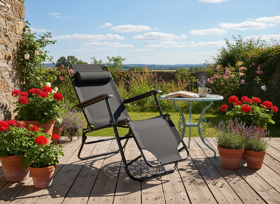 Leżak z łatwością dopasujesz do swoich potrzeb – od siedzenia z książką po pełne leżenie. Składana konstrukcja oszczędza miejsce podczas przechowywania i ułatwia przenoszenie na działkę, nad basen czy na kemping.