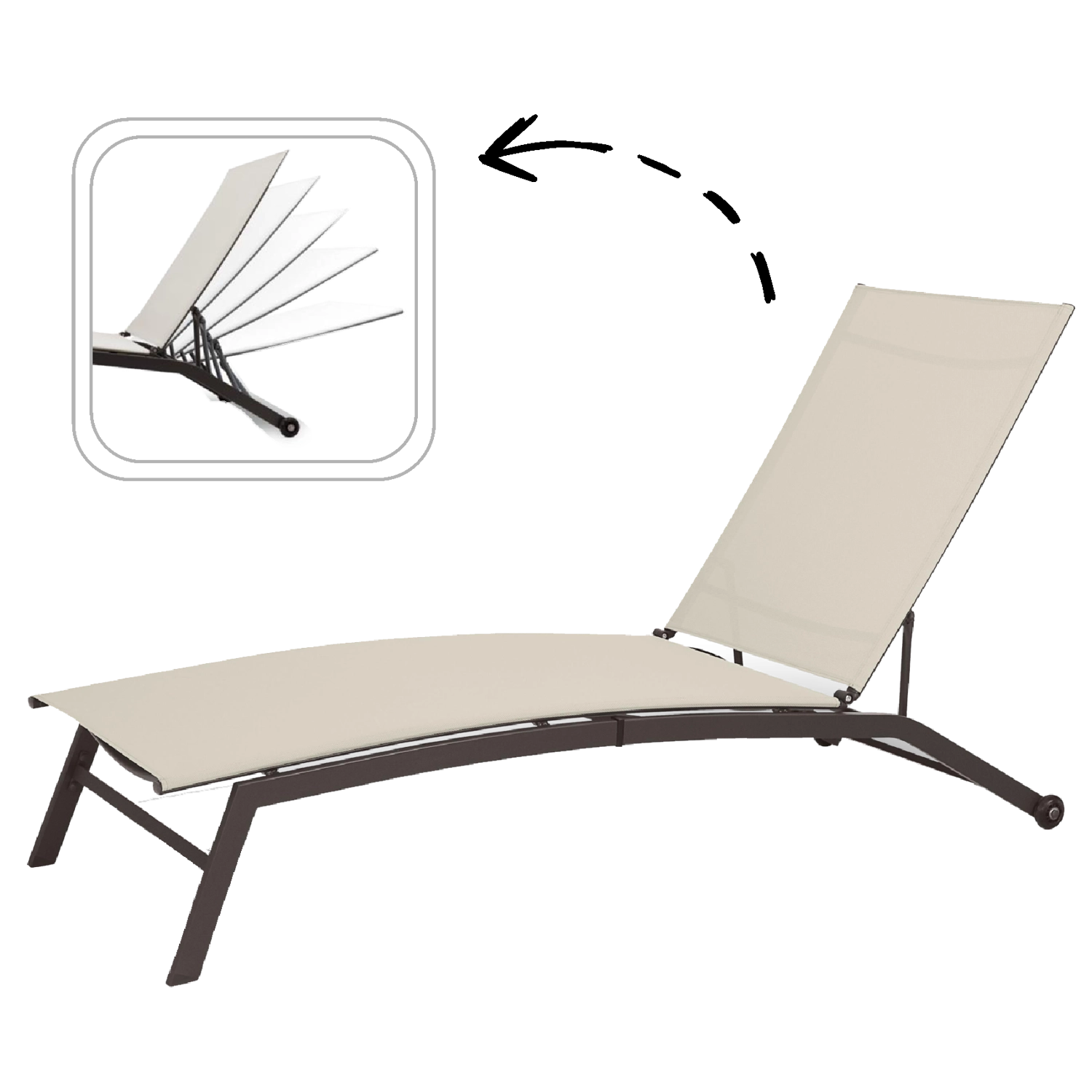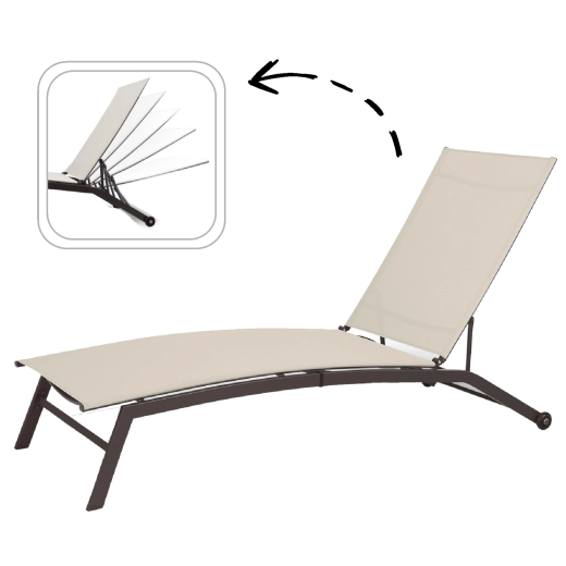 Ustaw kąt oparcia dokładnie tak, jak lubisz – od czytania aż po pełne opalanie. Stabilny mechanizm pewnie i wygodnie utrzymuje wybraną pozycję.