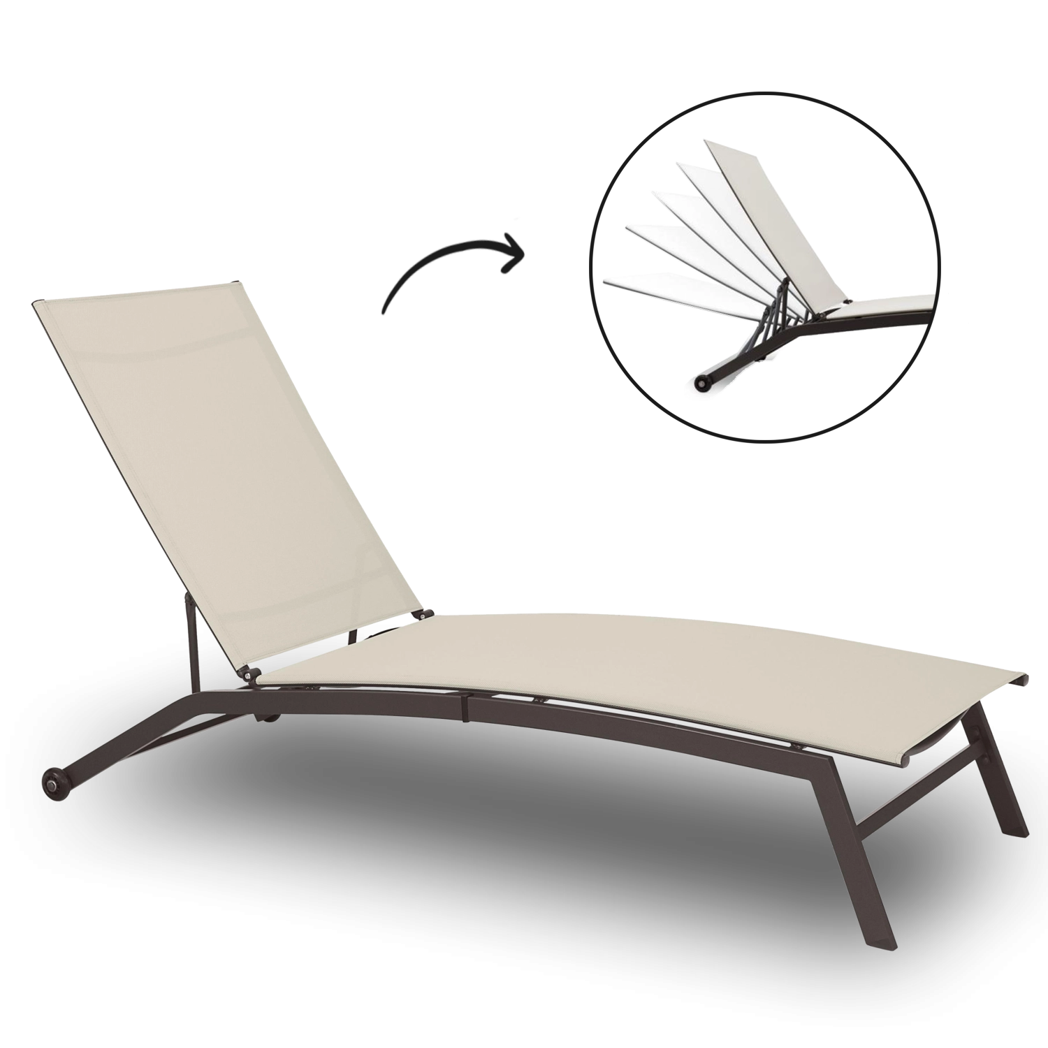Ciesz się wygodą na tarasie i przy basenie dzięki temu eleganckiemu ogrodowemu leżakowi w beżowym kolorze. Regulowane oparcie i zagłówek umożliwiają znalezienie idealnej pozycji do wypoczynku, wytrzymała tekstylna siatka szybko schnie i jest przyjemna w dotyku, a solidna metalowa rama z lakierem proszkowym zapewnia stabilność i długą żywotność.