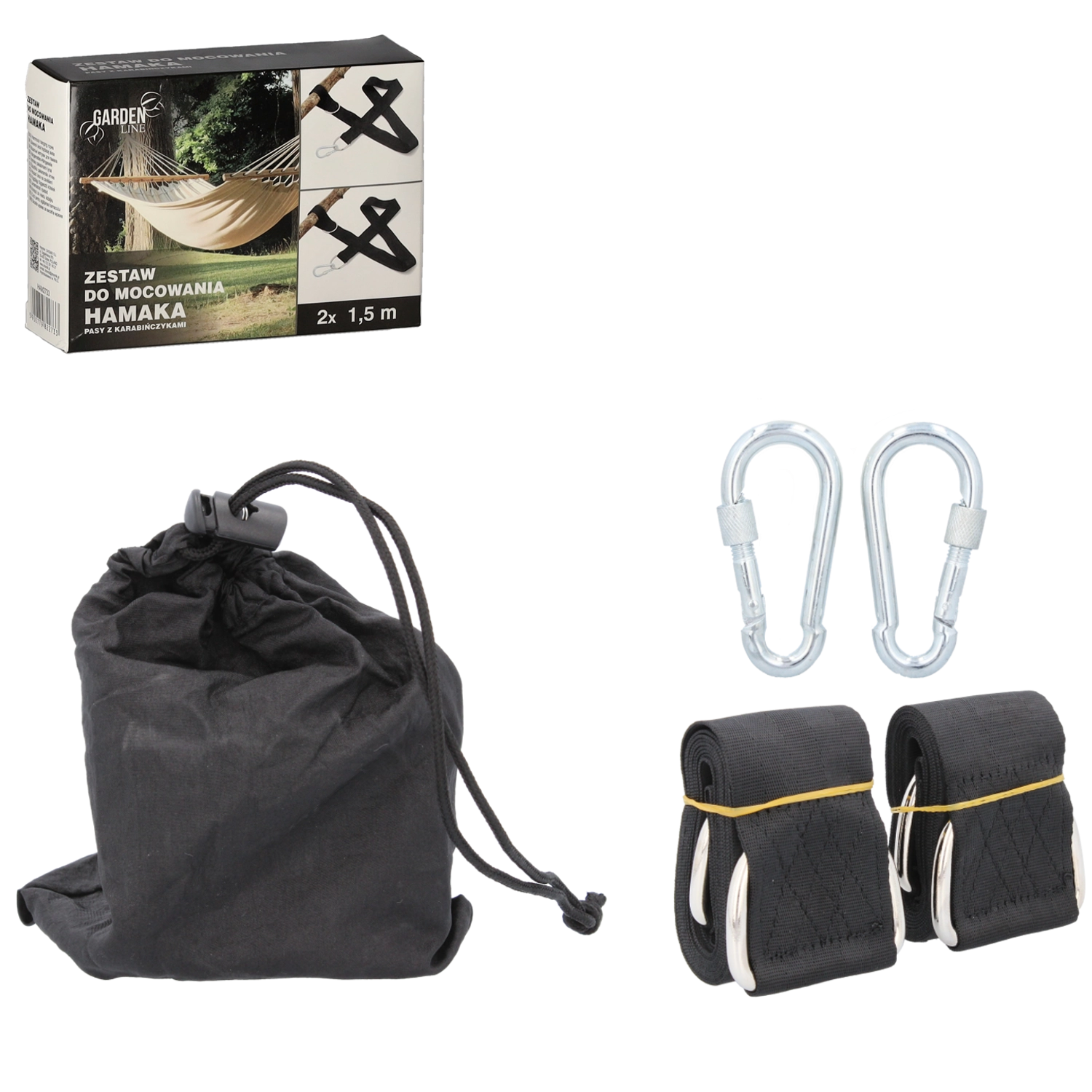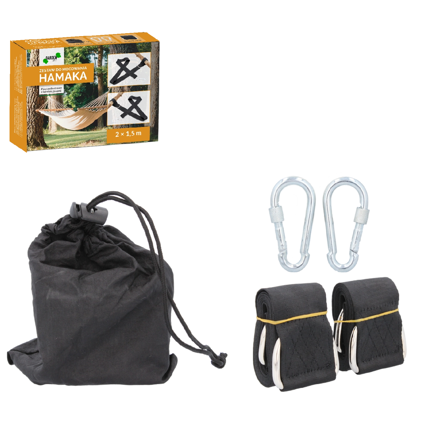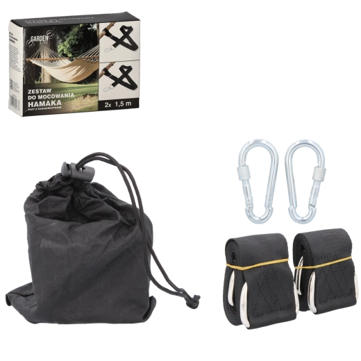 Niezawodne zawieszenie hamaka w kilka minut. Kompletny zestaw z pasami, karabińczykami i hakami zapewnia stabilność i komfort w ogrodzie, na działce, na balkonie oraz podczas biwakowania. Dzięki wysokiemu udźwigowi i solidnemu wykonaniu możesz kołysać się i relaksować z pełnym spokojem.