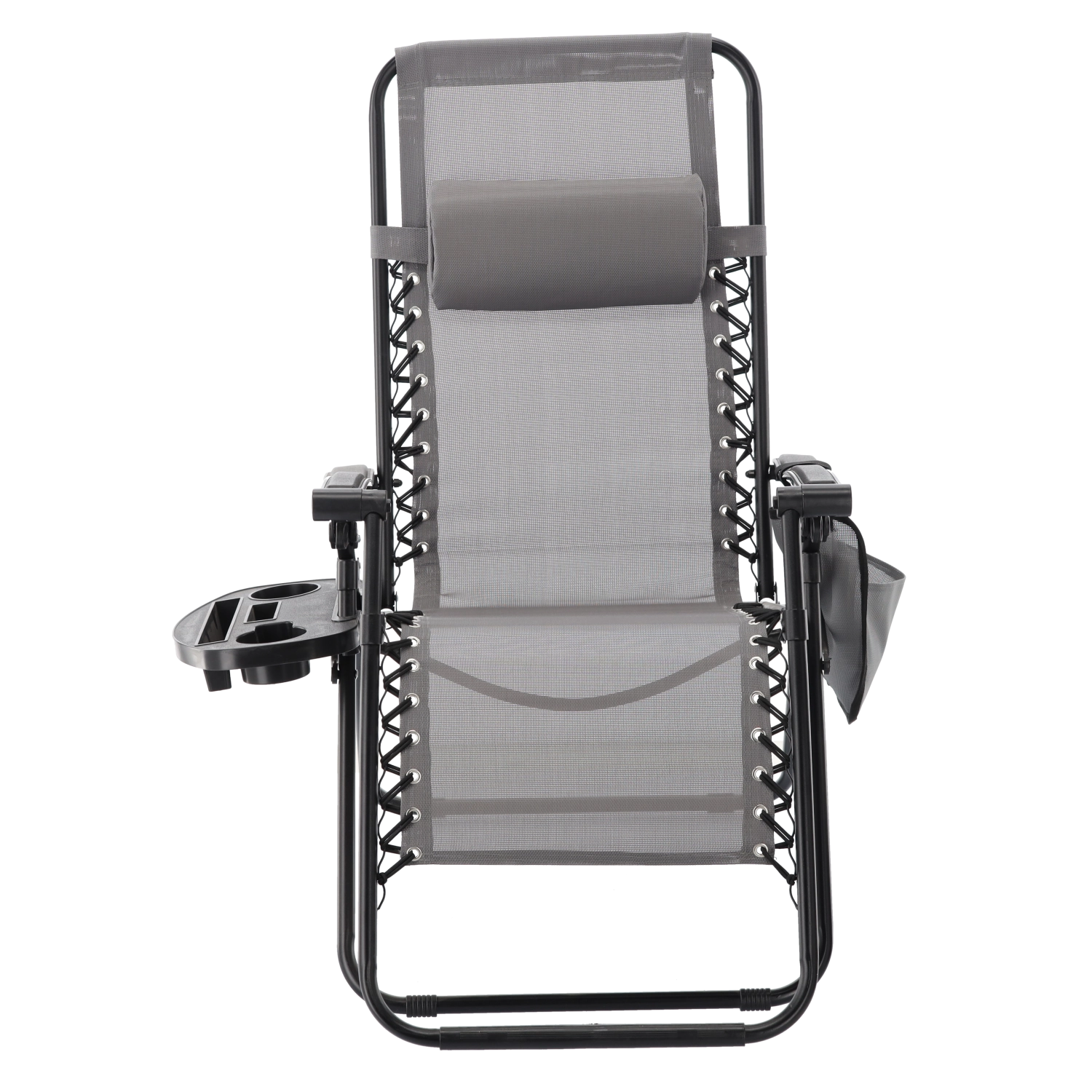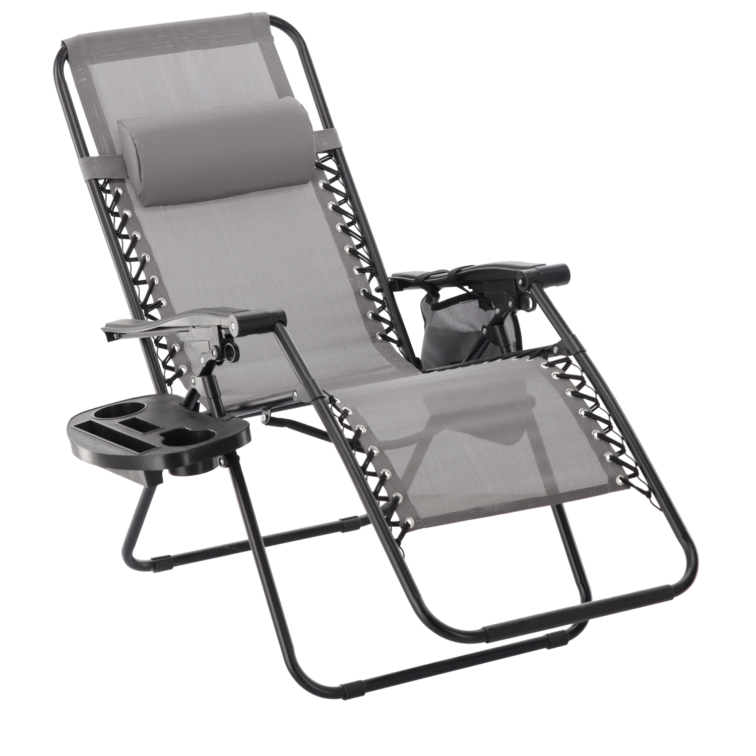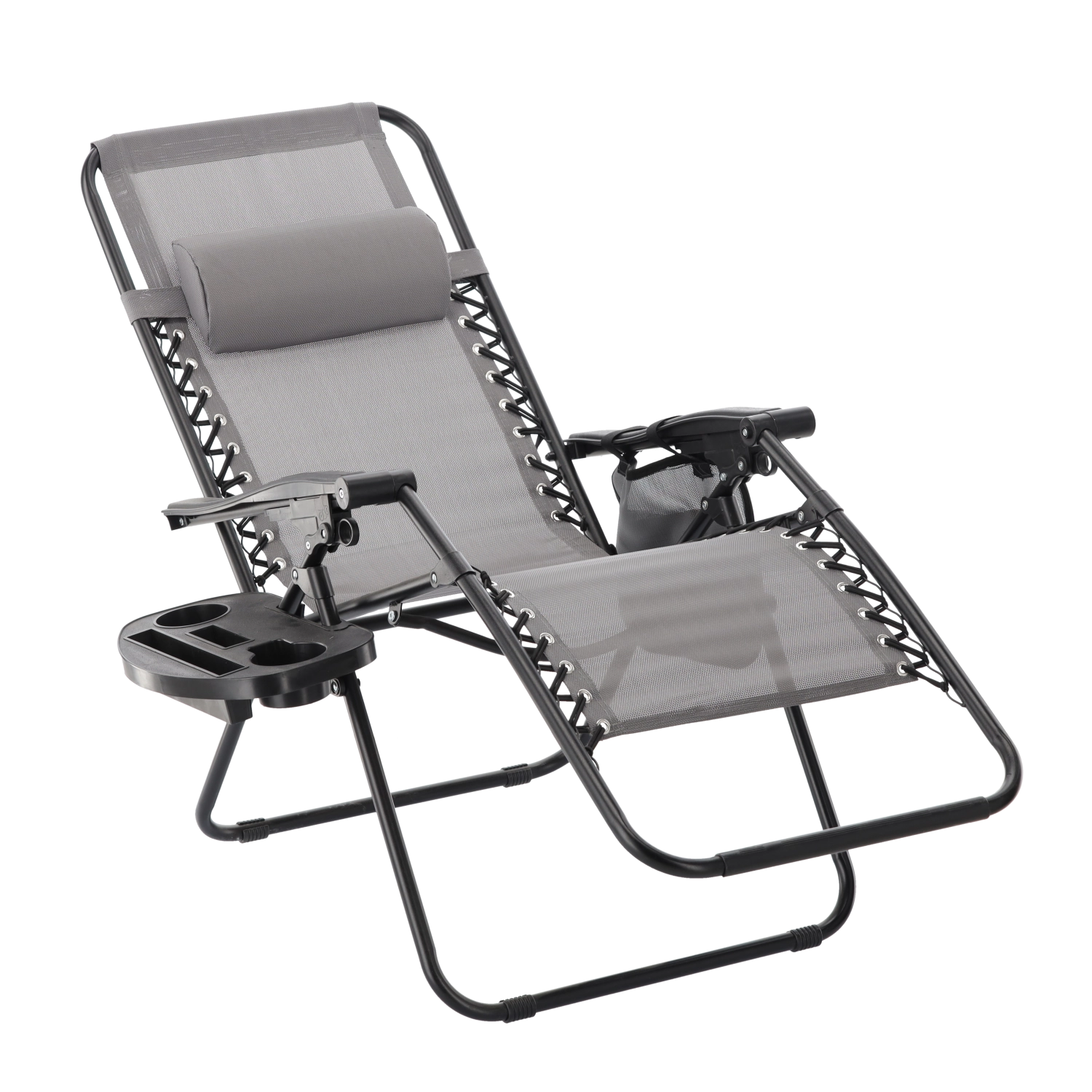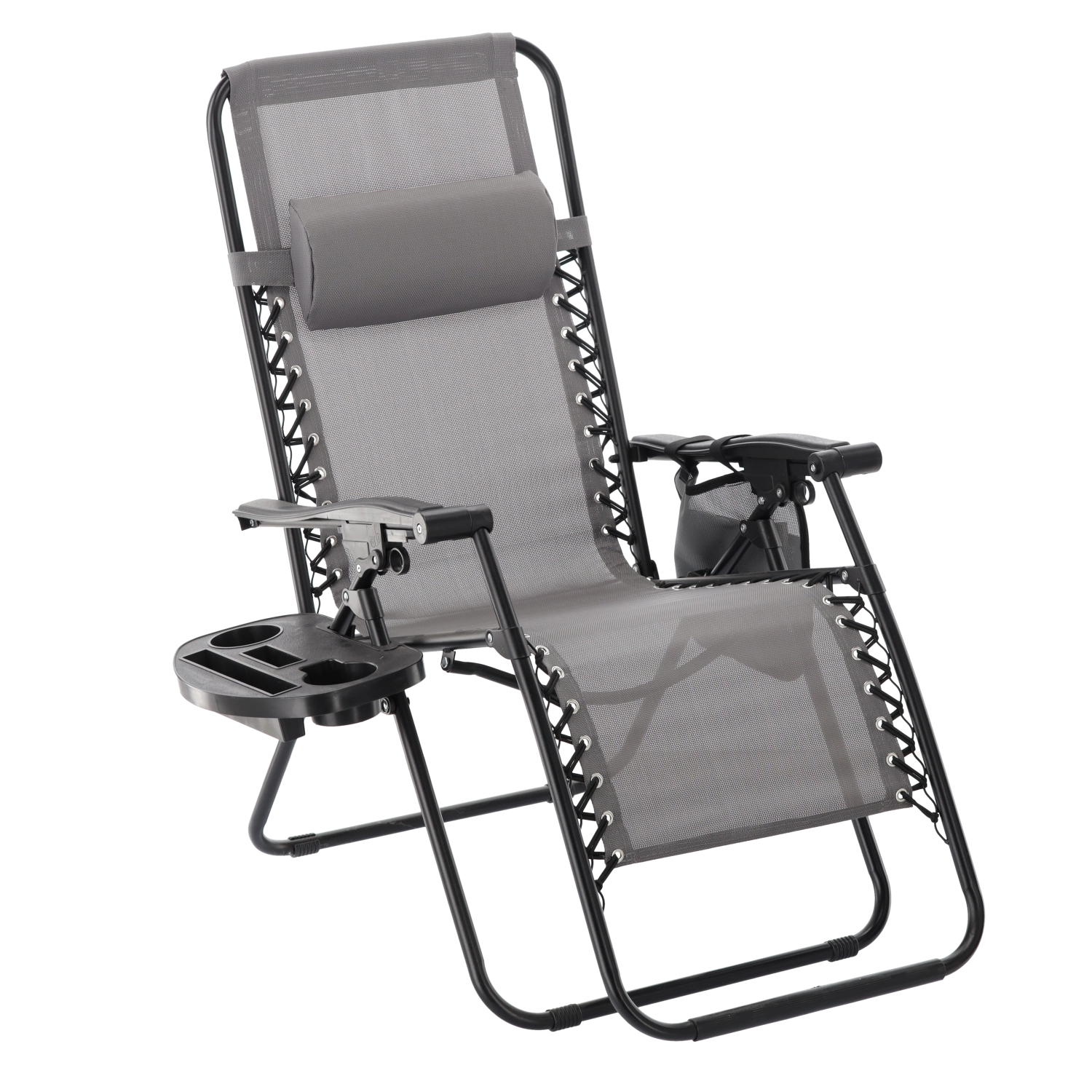 Zrelaksuj się na tarasie lub w ogrodzie z tym szarym leżakiem z funkcją niemal zerowej grawitacji. Oferuje regulowaną pozycję leżenia, odpinany zagłówek, praktyczny boczny stolik z uchwytem na napoje oraz kieszeń na drobiazgi. Oddychająca siatka Textilene zapewnia komfort nawet w upały, a solidna metalowa rama gwarantuje stabilność i trwałość do codziennego użytku na zewnątrz.