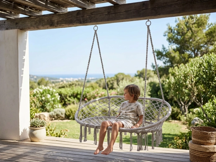 Szerokie oparcie 130 × 73 cm oraz udźwig do 300 kg gwarantują pewność nawet podczas wspólnego siedzenia. Dzięki ponadczasowemu wzornictwu krzesło łatwo dopasujesz do nowoczesnego i boho stylu, zarówno na zewnątrz, jak i wewnątrz.
