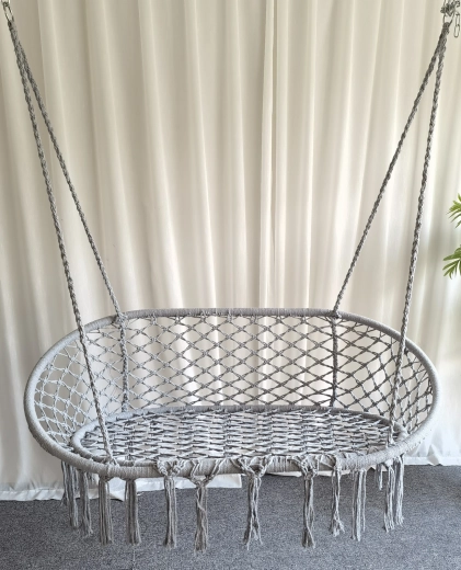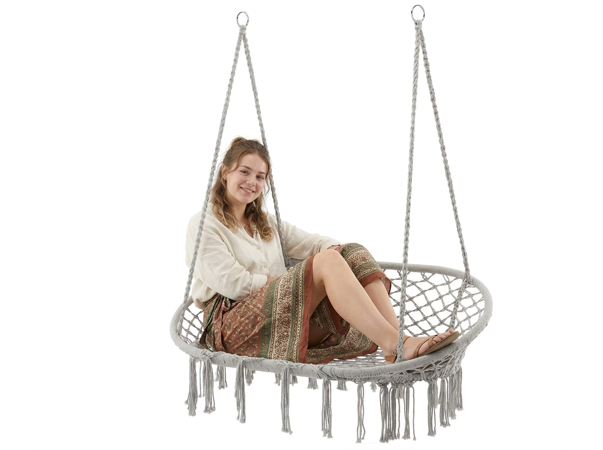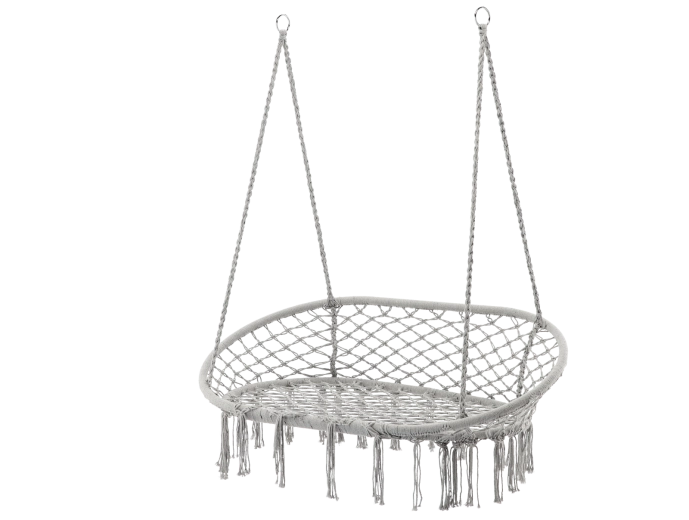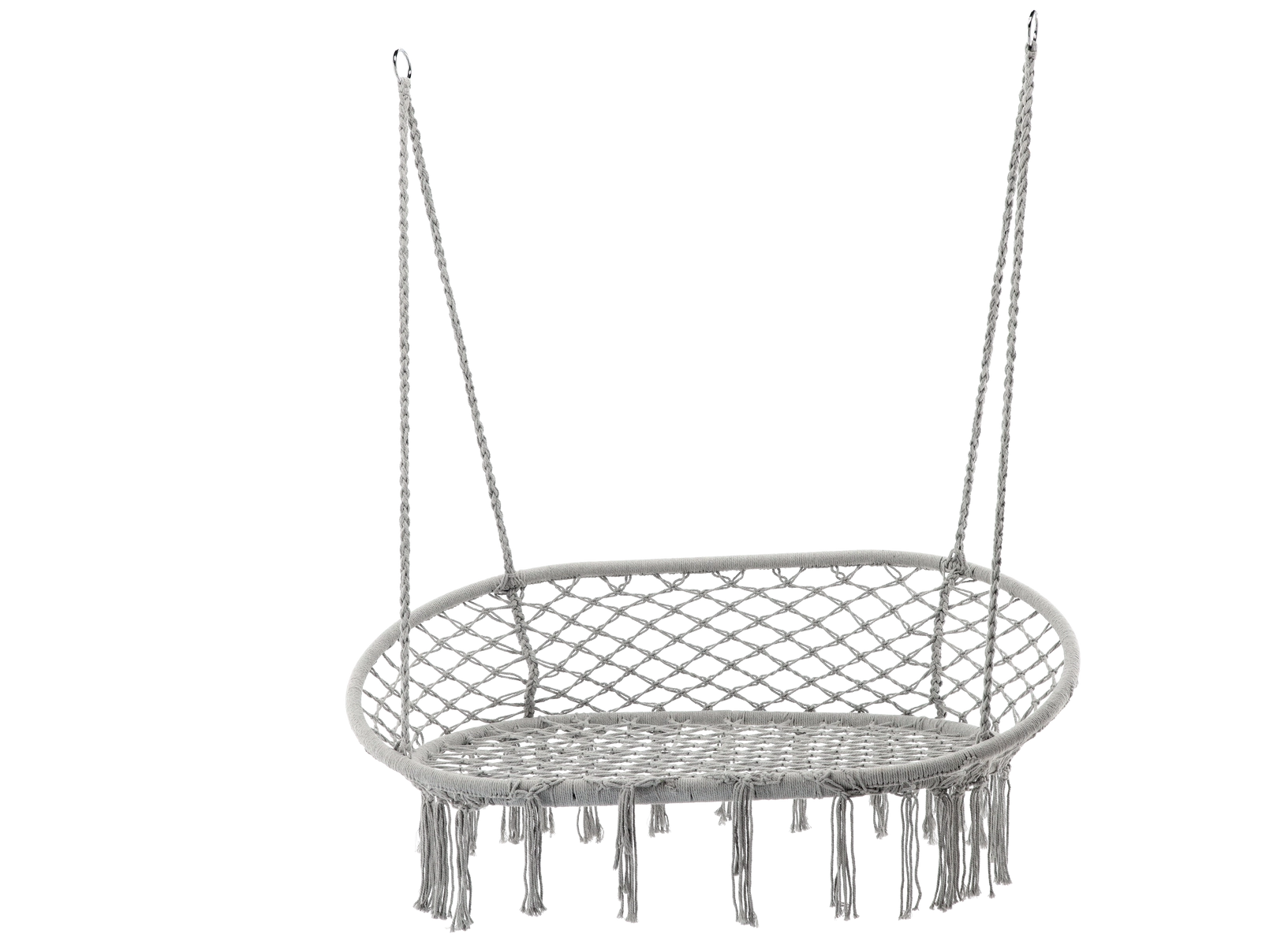 Podaruj sobie kojące bujanie i relaks we dwoje. Przestronne siedzisko 110 × 62 cm oraz przyjemna w dotyku tkanina w neutralnym szarym kolorze tworzą przytulne miejsce do czytania, kawy i odpoczynku po wymagającym dniu. Trwała stalowa rama malowana proszkowo zapewnia solidność, stabilność i długą żywotność.