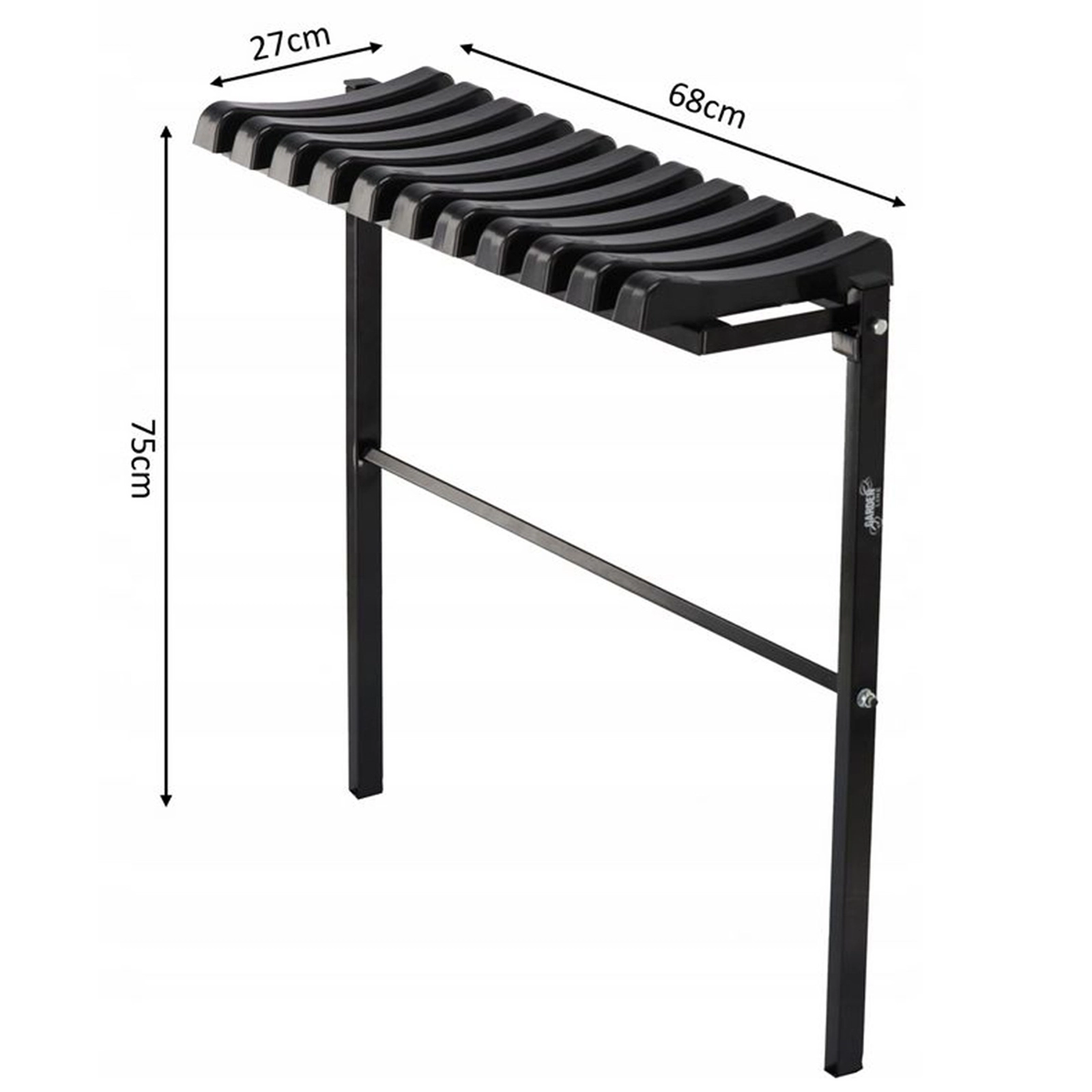 Dzięki stalowej konstrukcji i praktycznemu mocowaniu do betonu lub wymurowaniu ławka jest stabilna i gotowa do długotrwałego użytkowania na zewnątrz. To idealny wybór dla osób szukających rozwiązania trwałego, estetycznego i oszczędzającego przestrzeń.