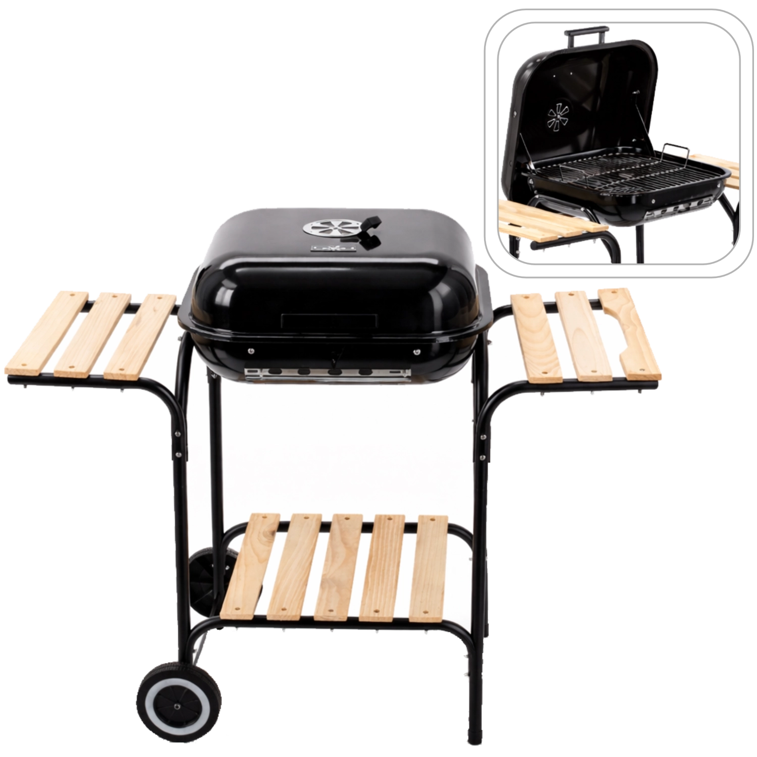 Ciesz się autentycznym smakiem grillowania z przestronnym grillem węglowym, który łączy stabilność, mobilność i świetne rezultaty. Dzięki dwóm bocznym półkom wszystkie składniki i akcesoria masz zawsze pod ręką, a kółka umożliwiają bezwysiłkowe przestawienie grilla tam, gdzie akurat potrzebujesz.