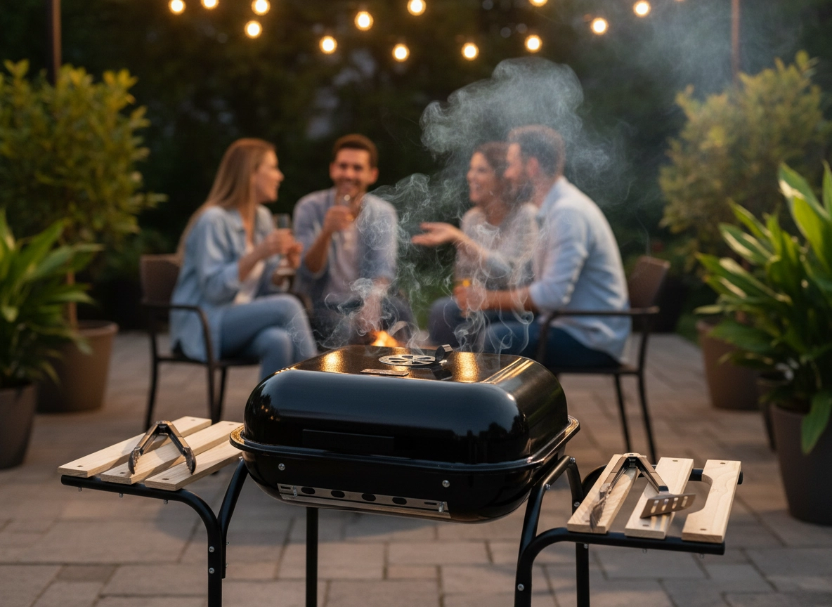 Zintegrowane kółka pozwalają łatwo przemieszczać grill po tarasie lub ogrodzie bez zbędnego wysiłku.