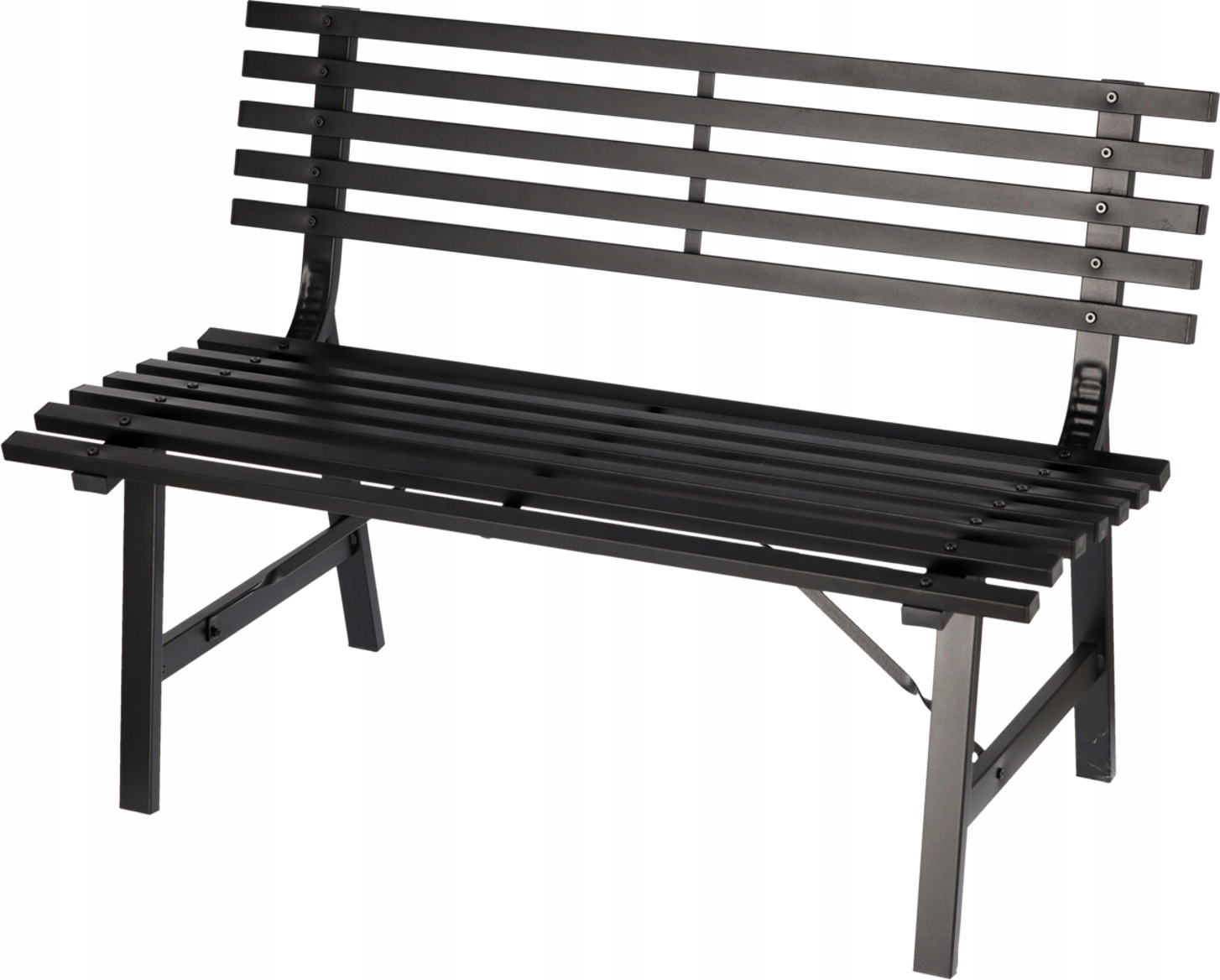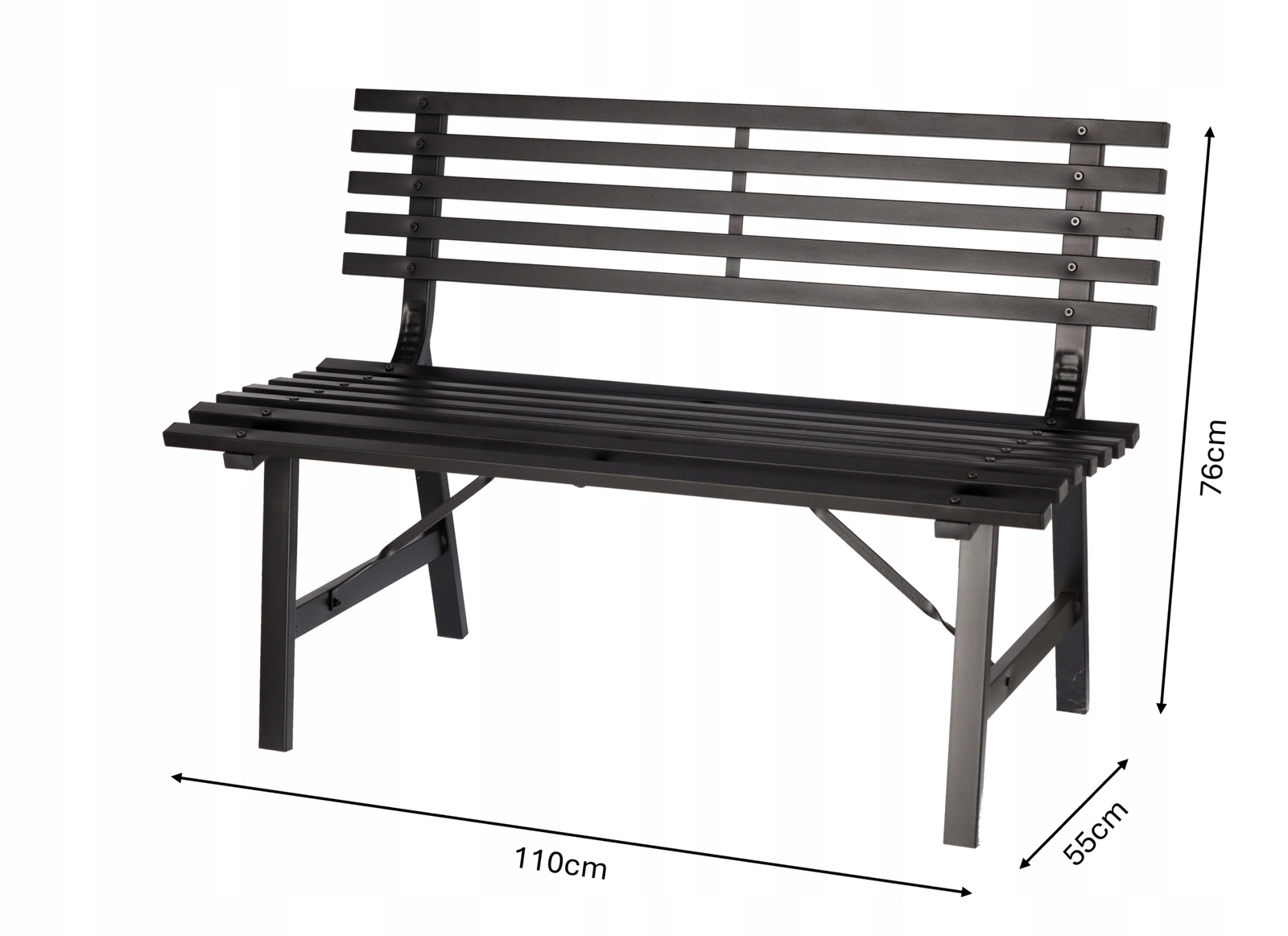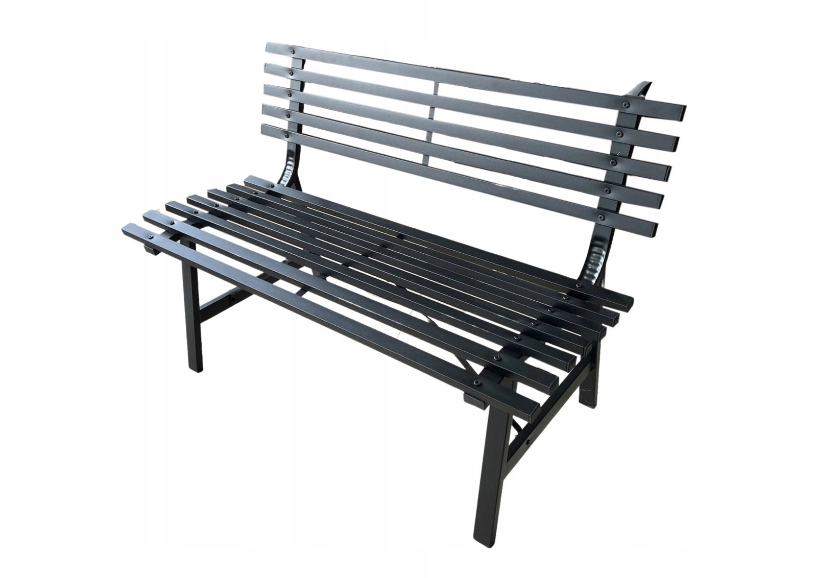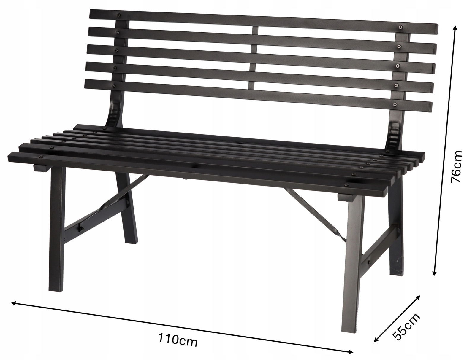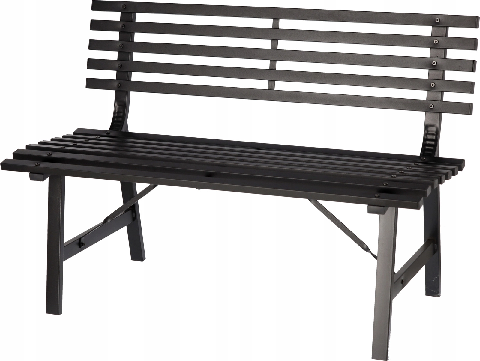 Matowa, proszkowa powłoka w czarnym kolorze łatwo komponuje się z innymi meblami i świetnie wygląda przy oczku wodnym, na tarasie i w parku.