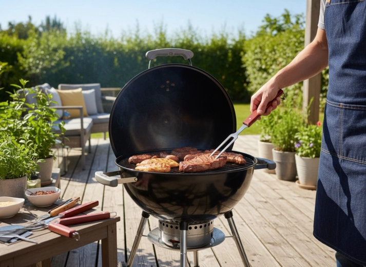 Ergonomiczne drewniane uchwyty chronią dłonie przed ciepłem i zapewniają wygodne, pewne trzymanie nawet podczas dłuższego grillowania.