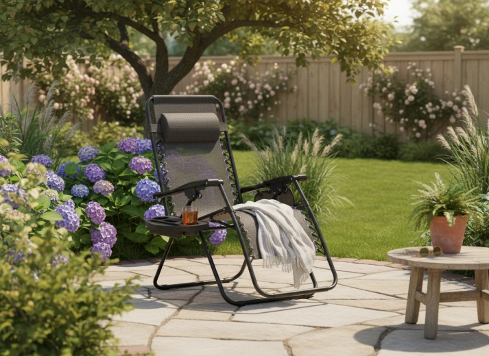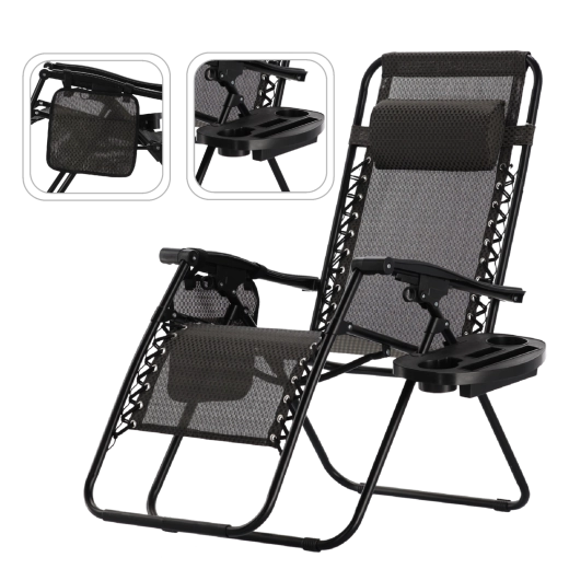 Ciesz się wygodą i stylem w ogrodzie, na tarasie i balkonie. To składane leżakowanie oferuje regulowany zagłówek i podnóżek, zdejmowany stolik boczny oraz praktyczną kieszeń boczną na telefon lub czasopismo. Solidna konstrukcja i oddychająca tkanina Textilene zapewniają stabilność, trwałość i komfort podczas każdego relaksu.