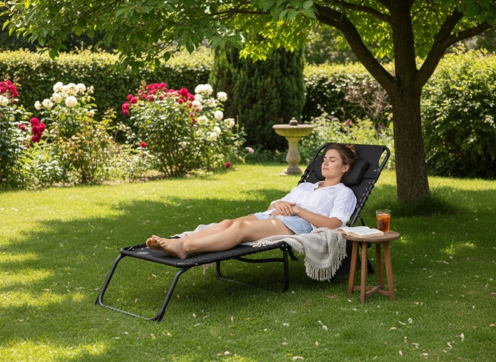 Leżak złożysz w kilka chwil, a bez wysiłku przeniesiesz lub schowasz. Idealny do ogrodu, na balkon, kemping i plażę.