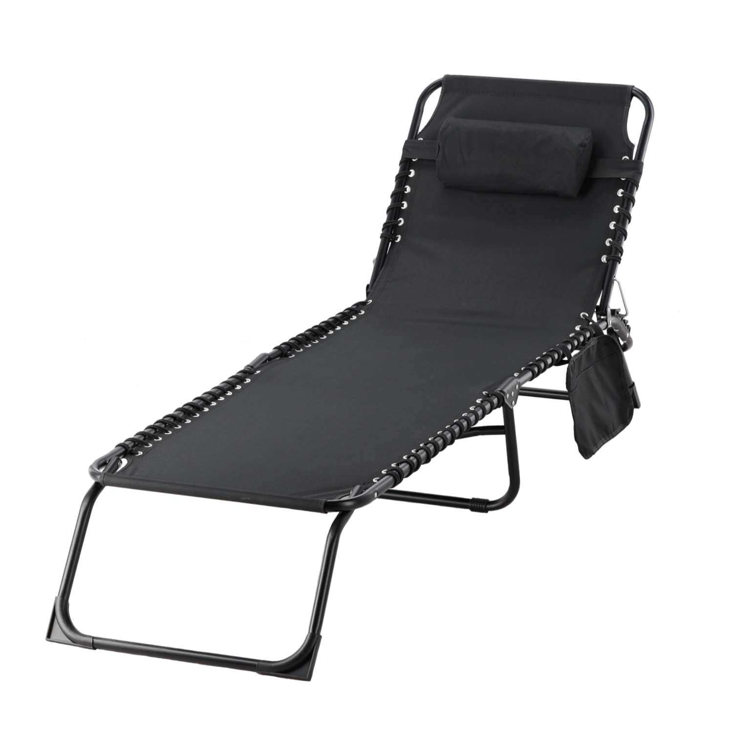 Leżak łączy stabilność i komfort w lekkiej, przenośnej formie. Solidna stalowa rama z powłoką proszkową gwarantuje długą żywotność, a odporna tkanina jest oddychająca i łatwa w czyszczeniu. Praktyczna boczna kieszeń pomieści telefon, książkę czy okulary przeciwsłoneczne, zawsze pod ręką.