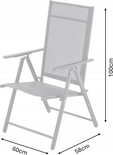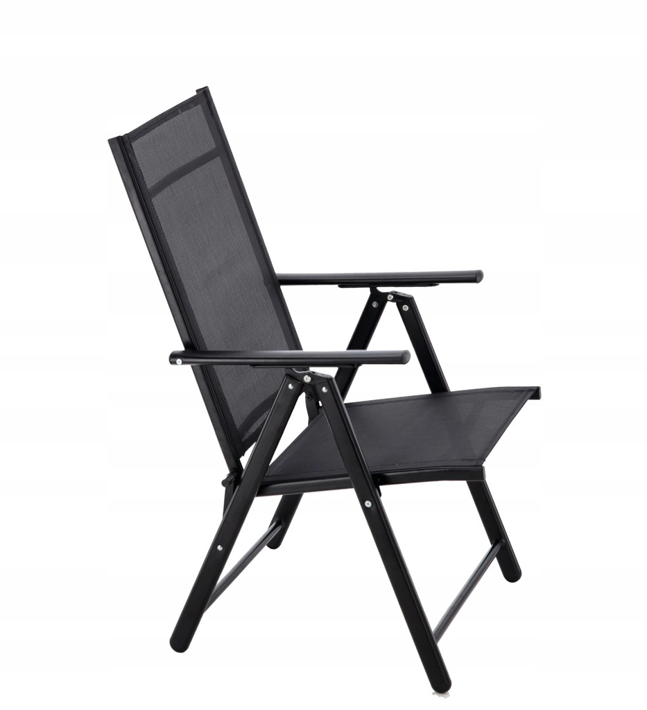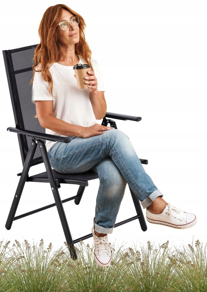 Dzięki 7‑stopniowej regulacji oparcia z łatwością przejdziesz od siedzenia przy stole do wygodnego wypoczynku. Wysokie oparcie i solidne podłokietniki zwiększają komfort, a mechanizm składania oszczędza miejsce podczas przechowywania i transportu.