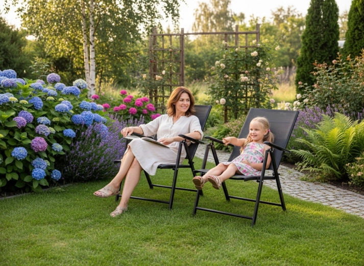 Łatwo ustawisz oparcie od pozycji wyprostowanej do półleżącej – idealnie do jedzenia i relaksu na słońcu.
