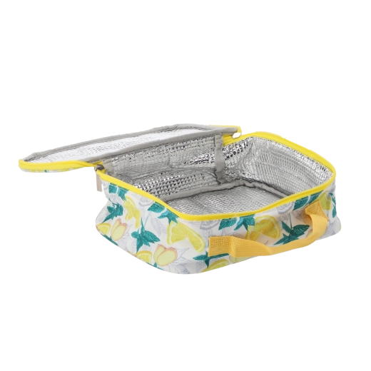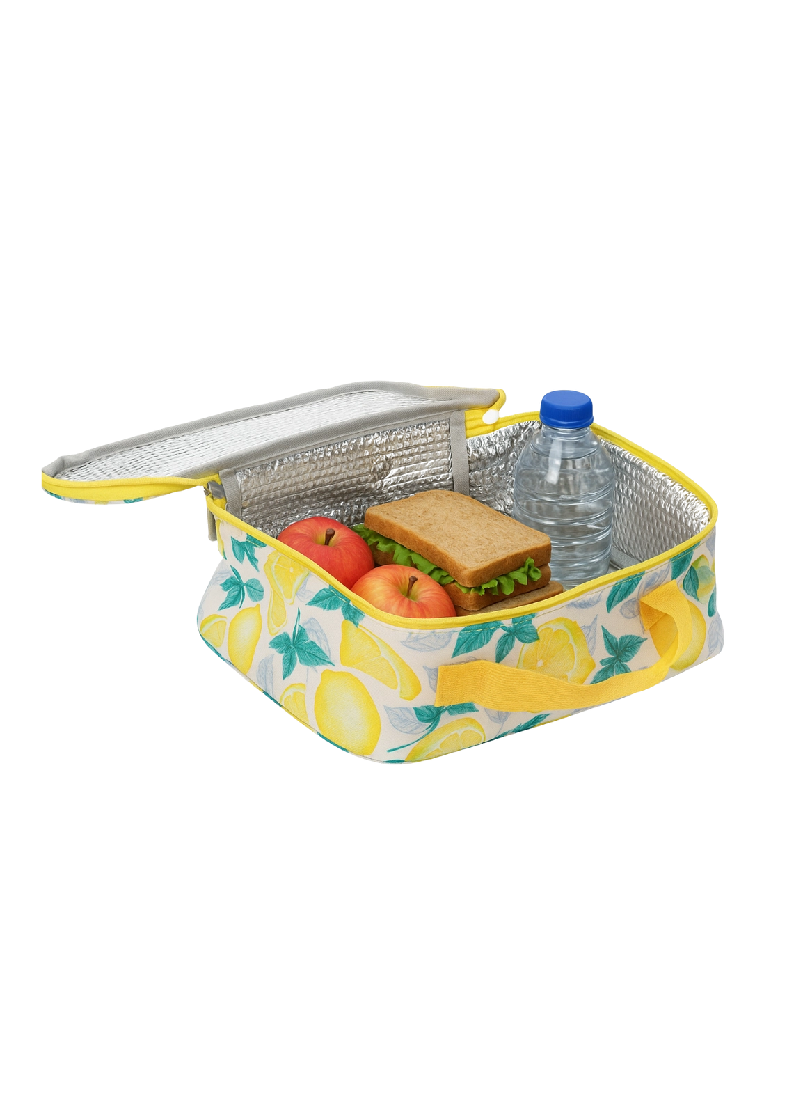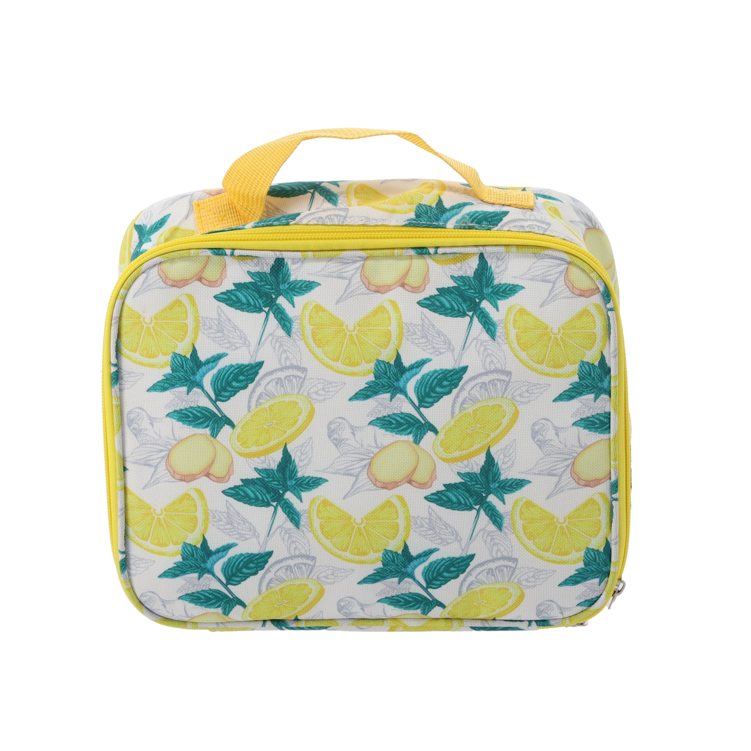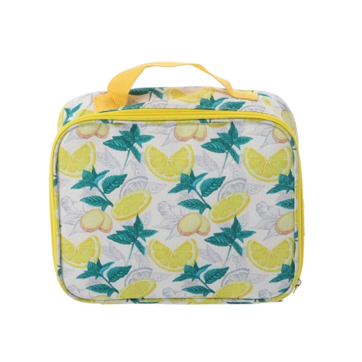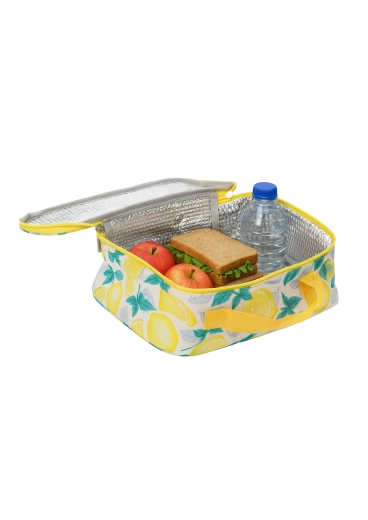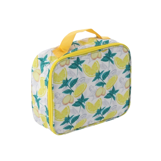 Stylowa i funkcjonalna torba termiczna z letnim, cytrynowym motywem świetnie sprawdzi się na obiad do pracy, do szkoły i na wycieczki. Aluminiowa izolacja termiczna wewnątrz pomaga utrzymać temperaturę żywności – zarówno zimną, jak i ciepłą – a wraz z dwiema wkładami chłodzącymi dłużej zachowuje świeżość zawartości.