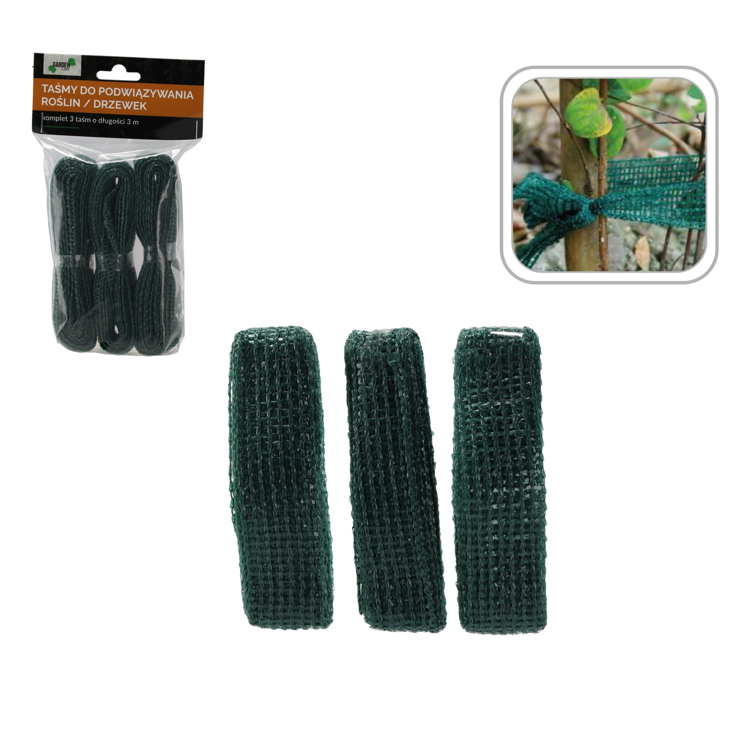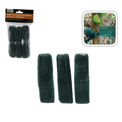 Praktyczny zestaw zawiera 3 taśmy do podwiązywania po 3 metry do delikatnego i bezpiecznego mocowania roślin, drzewek i krzewów. Oddychająca, siatkowa struktura zapewnia cyrkulację powietrza, stabilizuje wzrost i chroni przed złamaniem bez ograniczania rozwoju roślin.