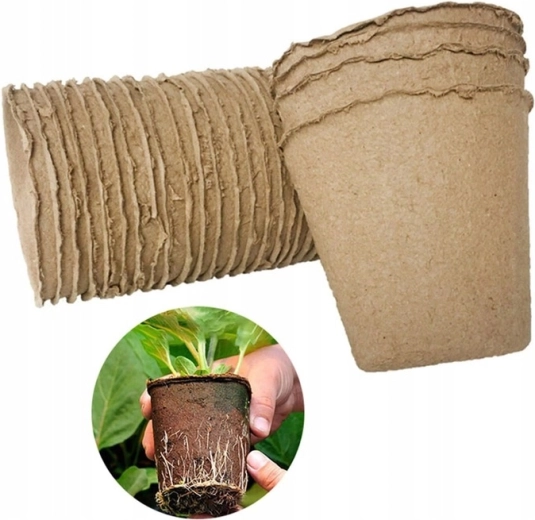 Doniczki z prasowanej celulozy/torfu można sadzić bezpośrednio na grządce. Materiał naturalnie się rozkłada i chroni korzenie przed uszkodzeniem podczas przesadzania.