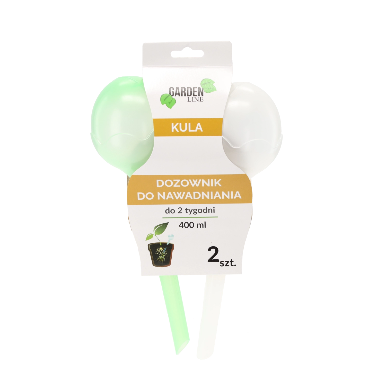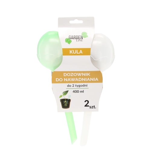 Instalacja jest prosta: napełnij kule wodą, włóż końcówkę do doniczki i pozwól działać grawitacji oraz zjawiskom kapilarnym. Przezroczyste wykonanie umożliwia szybkie sprawdzenie poziomu wody. Pojemność 400 ml na sztukę zapewnia wygodny zapas nawet na 14 dni w zależności od rodzaju rośliny, wielkości doniczki i warunków w pomieszczeniu.