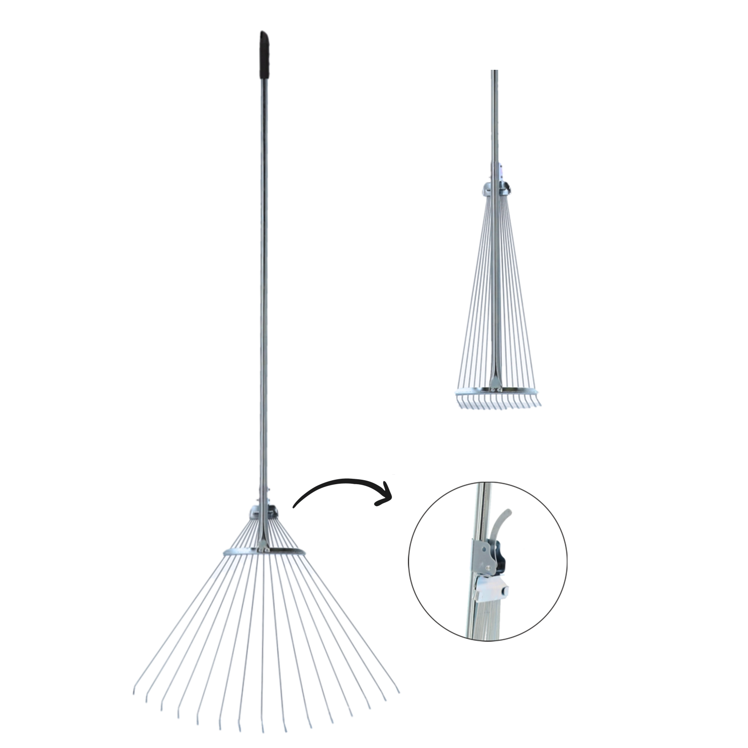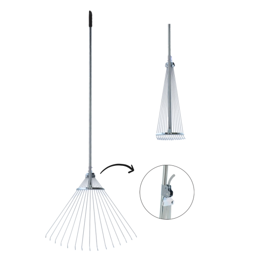 Solidne, metalowe wykonanie zapewnia długą żywotność, a płynna regulacja szerokości roboczej pomaga precyzyjnie ukierunkować pracę. Grabie są idealne do liści, ściętej trawy i drobnych odpadków ogrodowych na trawnikach i rabatach.
