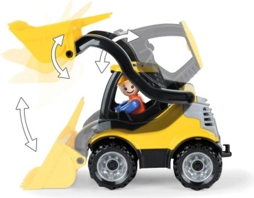 Przednia łyżka łatwo się podnosi i opuszcza, dzięki czemu dzieci mogą nabierać i przesypywać piasek lub klocki jak prawdziwą ładowarką.