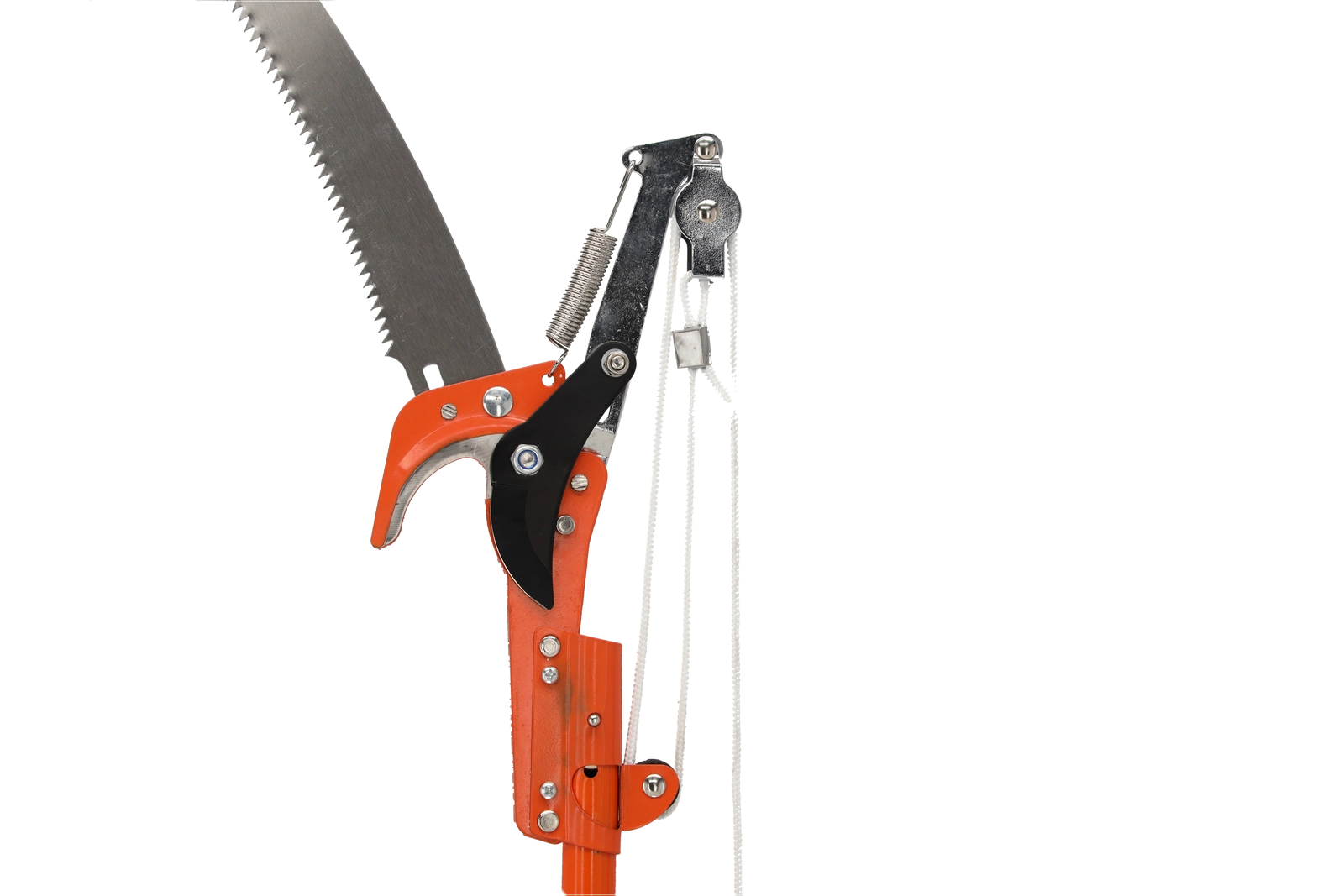 Nożyce bypass z przełożeniem dźwigniowo/linowym do czystych cięć oraz odłączana zakrzywiona piła do grubszych gałęzi – do wszechstronnych prac na drzewach.