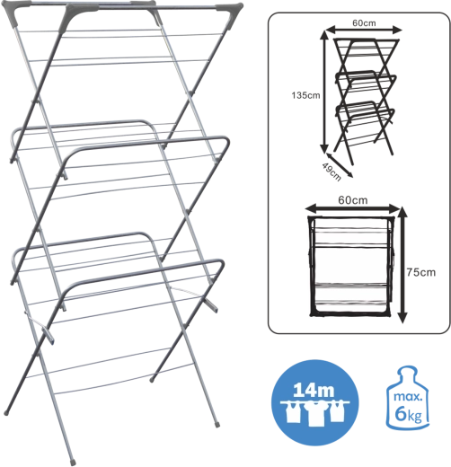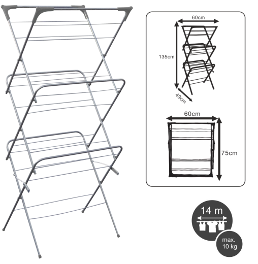 Trzypoziomowa suszarka na pranie Camilla, składana