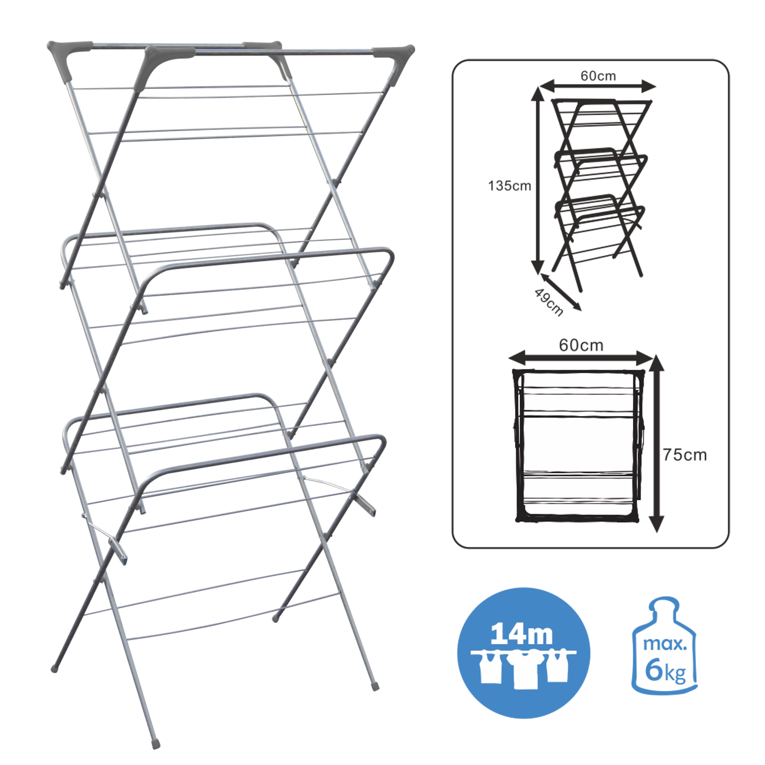 Praktyczna trzypoziomowa suszarka na pranie CAMILLA oszczędza miejsce i umożliwia efektywne suszenie dużej ilości ubrań oraz tekstyliów. Dzięki kompaktowym wymiarom sprawdzi się na balkonie, tarasie i w mniejszych mieszkaniach. Oferuje stabilną konstrukcję, szybki przepływ powietrza dla krótszego czasu schnięcia oraz łatwe składanie dla oszczędności przestrzeni.