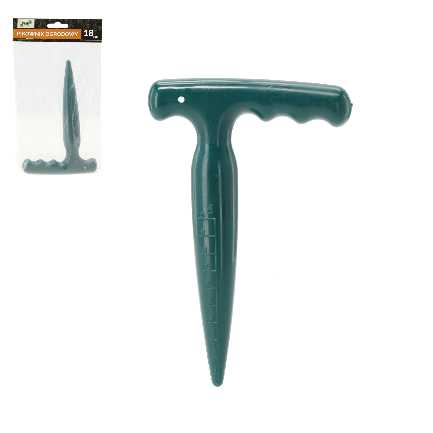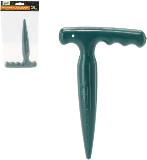 Praktyczny pikownik o długości 18 cm do precyzyjnego sadzenia nasion, cebulek i rozsady. Dzięki ergonomicznej rączce wygodnie leży w dłoni, miarka 0–10 cm pomaga ustalić idealną głębokość sadzenia, a wytrzymałe tworzywo gwarantuje długą żywotność przy codziennym użytkowaniu.