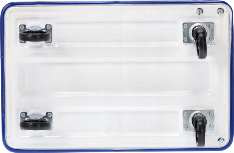 Cztery w pełni obrotowe kółka ułatwiają prowadzenie na równych podłogach i w wąskich alejkach, także przy większym obciążeniu.