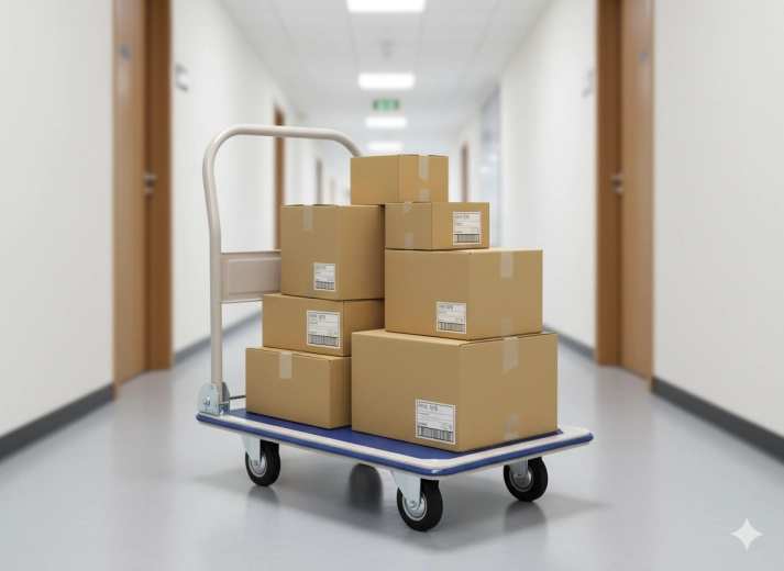 Cztery obrotowe kółka zapewniają płynny ruch nawet w wąskich alejkach, a ergonomiczna, składana rączka zwiększa komfort prowadzenia wózka. Dzięki kompaktowym wymiarom łatwo go przechowasz także w mniejszych przestrzeniach – idealny do magazynu, na pocztę, do warsztatu czy biura.