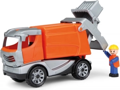 Auto ma otwieraną kabinę z aktywną figurką kierowcy oraz tylny kontener, który łatwo obsługiwać. Dzieci będą cieszyć się realistycznym załadunkiem i wyładunkiem „odpadów”, poćwiczą motorykę i poznają podstawy recyklingu oraz dbania o porządek.