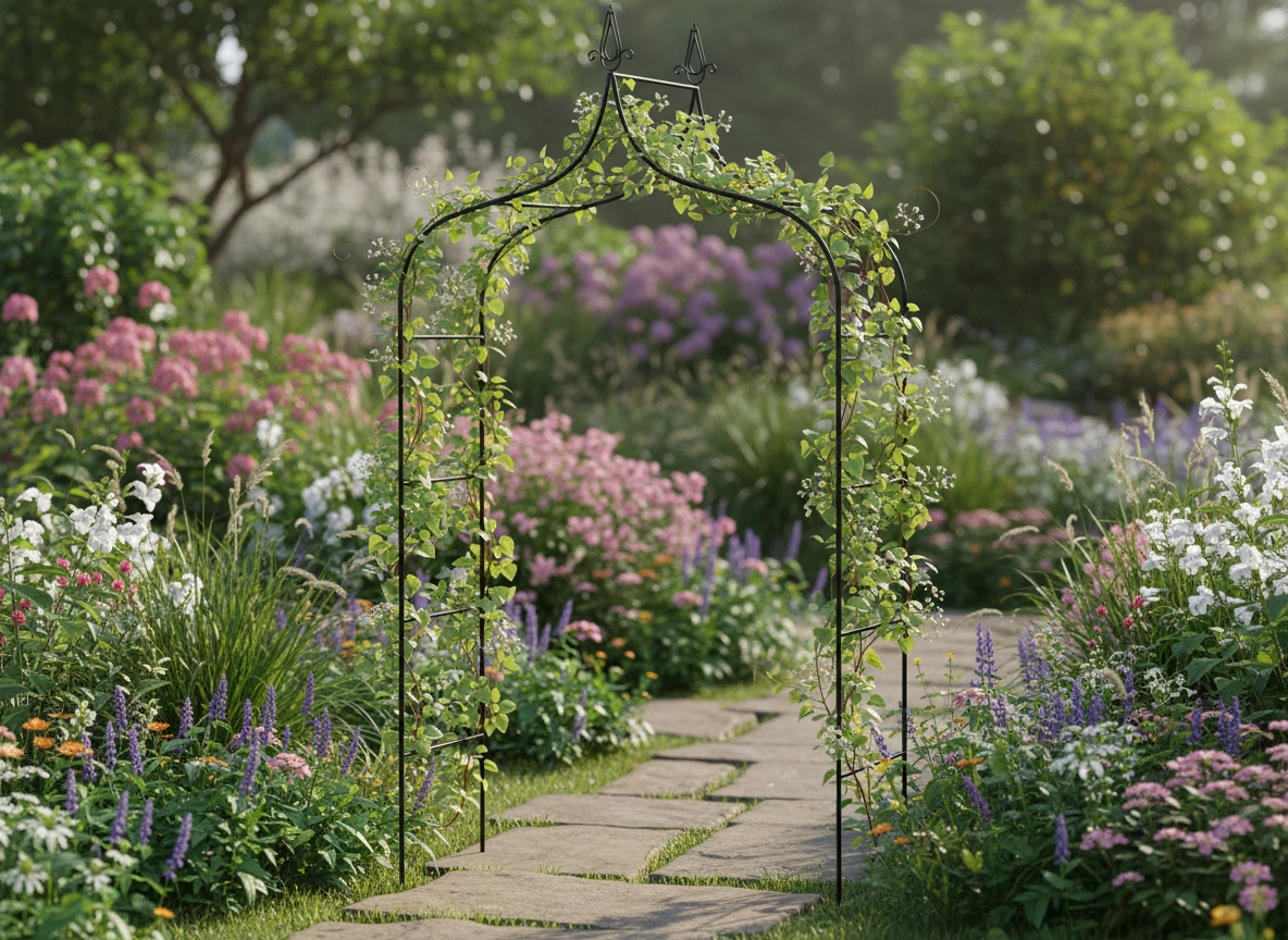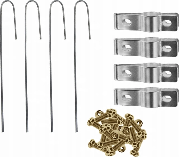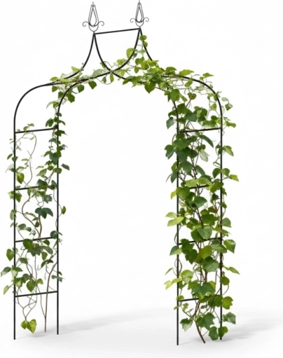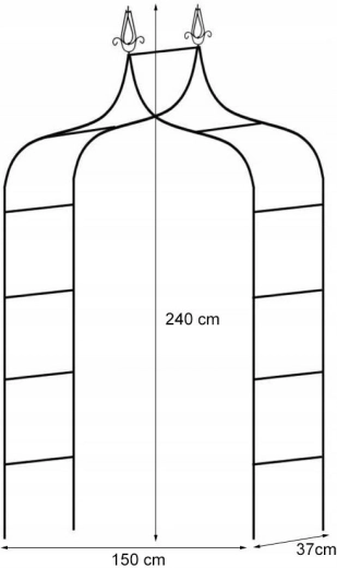 Stal malowana proszkowo w uniwersalnym czarnym kolorze jest odporna na warunki atmosferyczne i dobrze komponuje się zarówno z klasycznymi, jak i nowoczesnymi ogrodami. W zestawie znajdują się kotwy do bezpiecznego zamocowania, które zapewniają stabilność także przy wietrze.