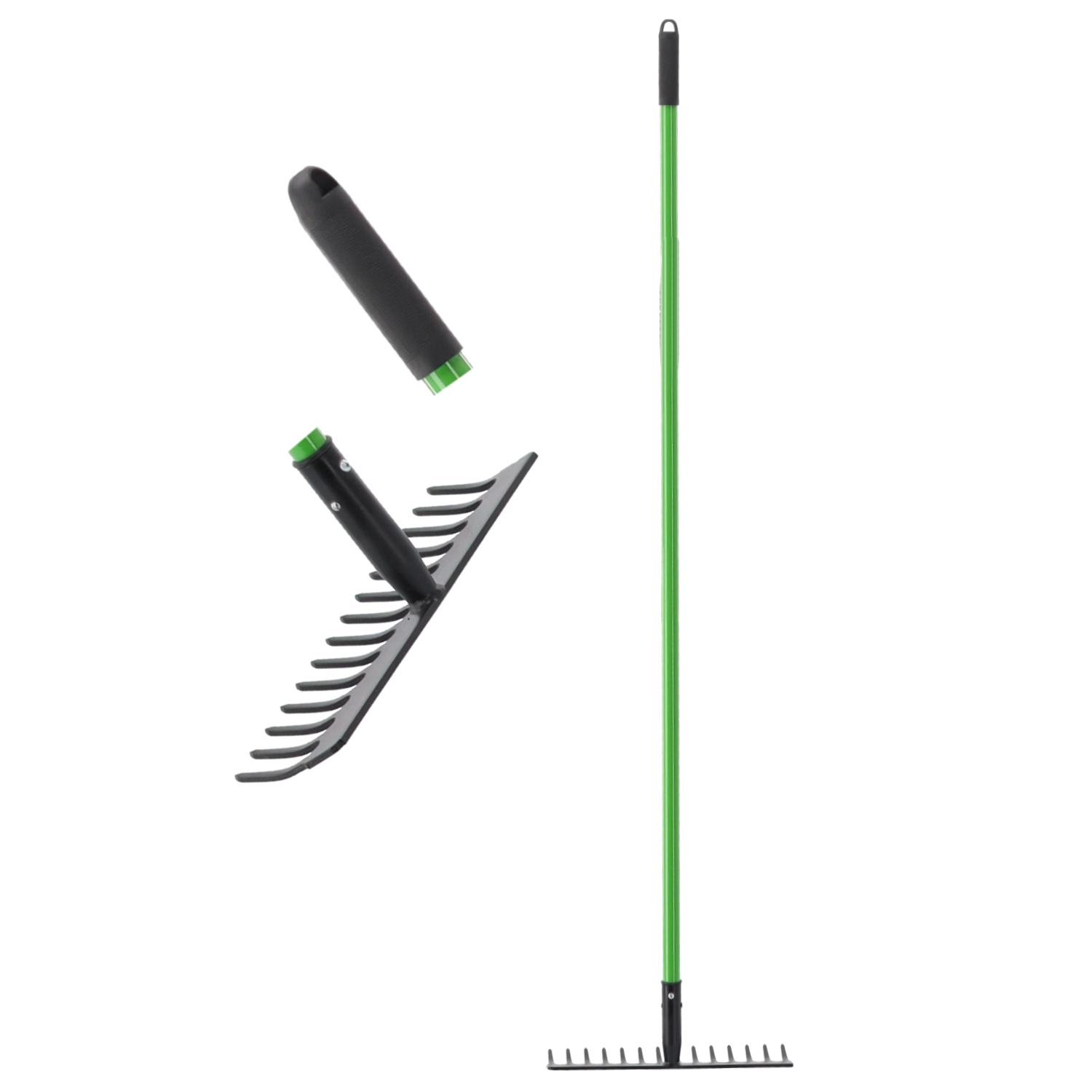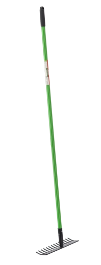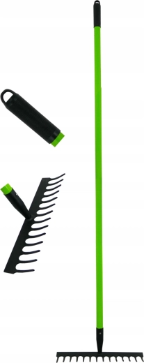 Dla pewnego chwytu zastosowano antypoślizgową nasadkę oraz zakończenie praktycznym uchwytem. Grabie sprawdzą się w ogrodach, na działkach i na placach budowy – wszędzie tam, gdzie liczy się niezawodne narzędzie.