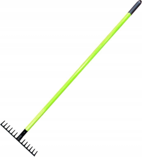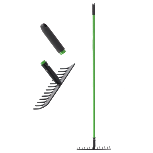 Te uniwersalne grabie łączą wytrzymałość, niską masę i komfort. Dzięki stalowej głowicy z powłoką proszkową poradzą sobie ze zgrabianiem liści, wyrównywaniem gleby i pracami wokół domu. Trzonek z włókna szklanego jest mocny, a jednocześnie lekki, więc praca jest łatwa i efektywna.