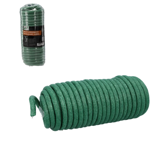 Praktyczny drut ogrodowy z miękką piankową powłoką do delikatnego podwiązywania roślin. Jest elastyczny, odporny na warunki pogodowe i dzięki zielonemu kolorowi niemal niewidoczny wśród łodyg i liści. Nie wrzyna się w rośliny, chroni je przed złamaniem i pomaga im prawidłowo rosnąć.