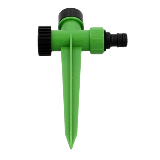 Praktyczny pulsacyjny zraszacz ogrodowy na kolcu do efektywnego nawadniania większych powierzchni. Oferuje płynną regulację zasięgu, ustawienie zraszania od częściowego do pełnego okręgu oraz trwałą głowicę z ABS. Stabilny kolec w kształcie litery T zapewnia pewne osadzenie w ziemi i łatwe podłączenie węża.