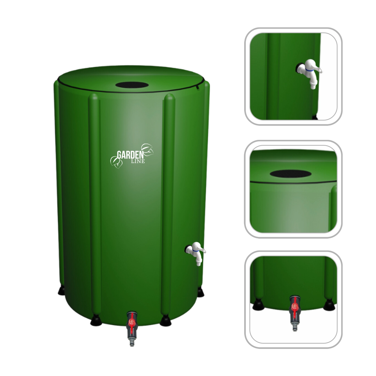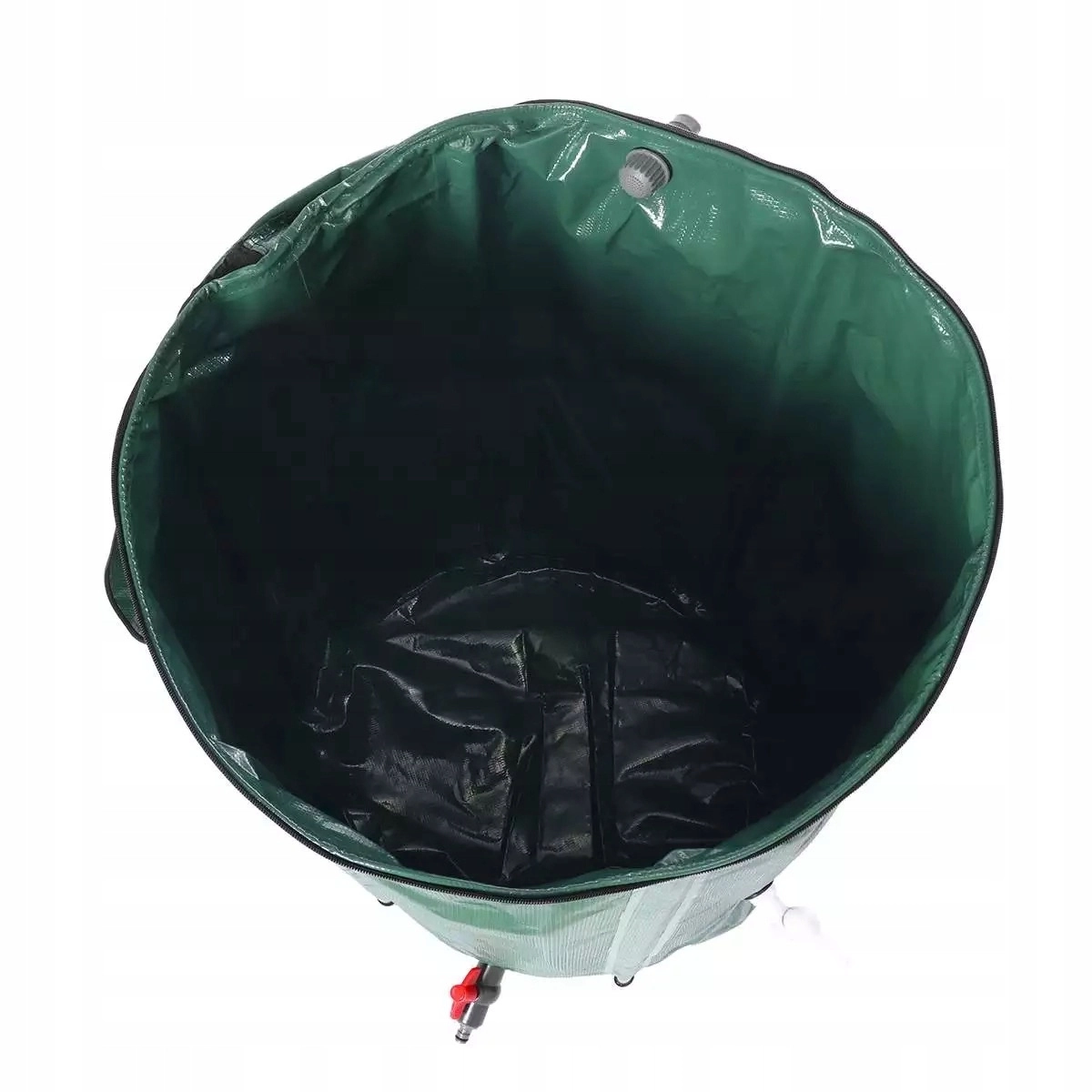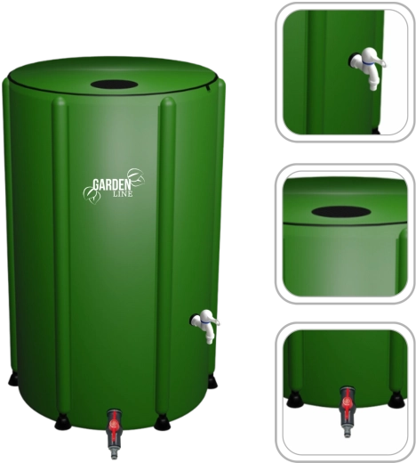 Wytrzymały materiał PVC 1000D z wzmocnieniami jest odporny na deszcz, słońce i mróz. Pokrywa na zamek zapobiega wpadaniu liści, a zintegrowane siatki wyłapują drobne zanieczyszczenia. Gdy nie jest potrzebny, zbiornik łatwo złożysz i przechowasz.