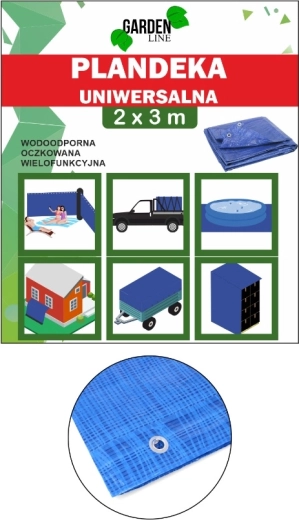 Ta uniwersalna niebieska plandeka z wytrzymałego polietylenu chroni przed wilgocią, brudem i promieniowaniem UV. Niska masa 50 gsm ułatwia przenoszenie i obsługę, a wzmocniona struktura i metalowe oczka umożliwiają solidne przymocowanie do liny, kołków lub haków.