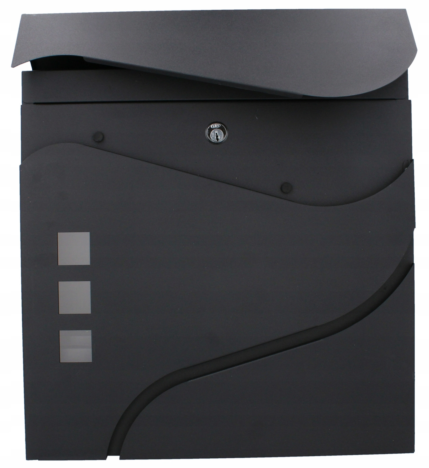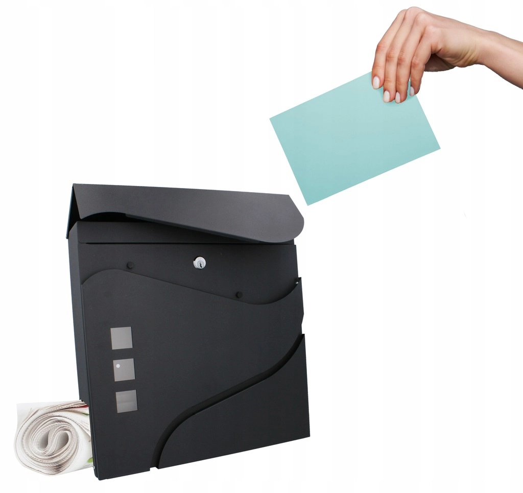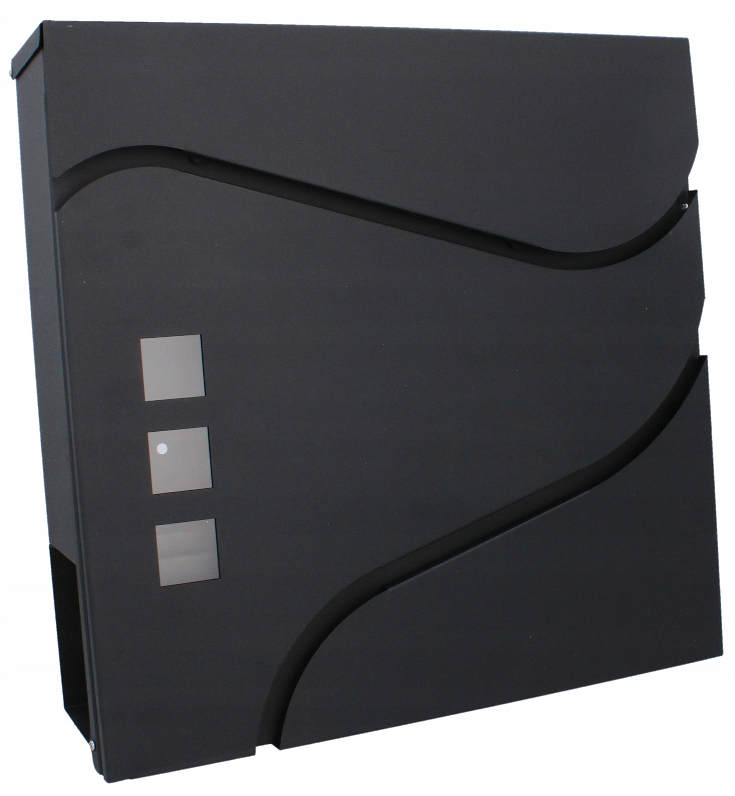 Elegancki minimalistyczny design z łagodnymi krzywiznami i trzema okienkami uzupełni nowoczesne elewacje. Praktyczna boczna lub dolna przegroda na gazety (w zależności od wariantu) umożliwia oddzielne przechowywanie druków. Montaż na ścianie jest szybki dzięki otworom pod montaż.