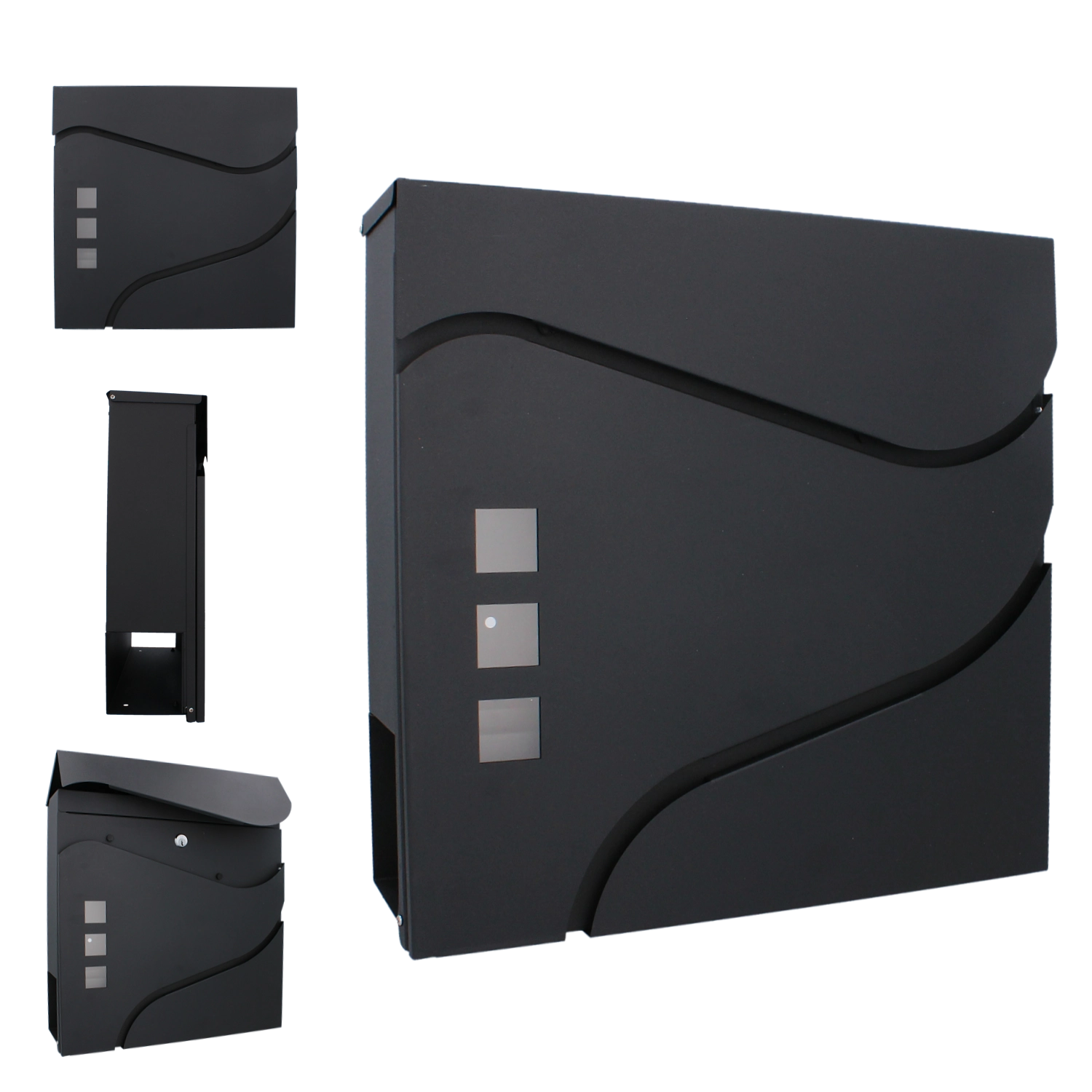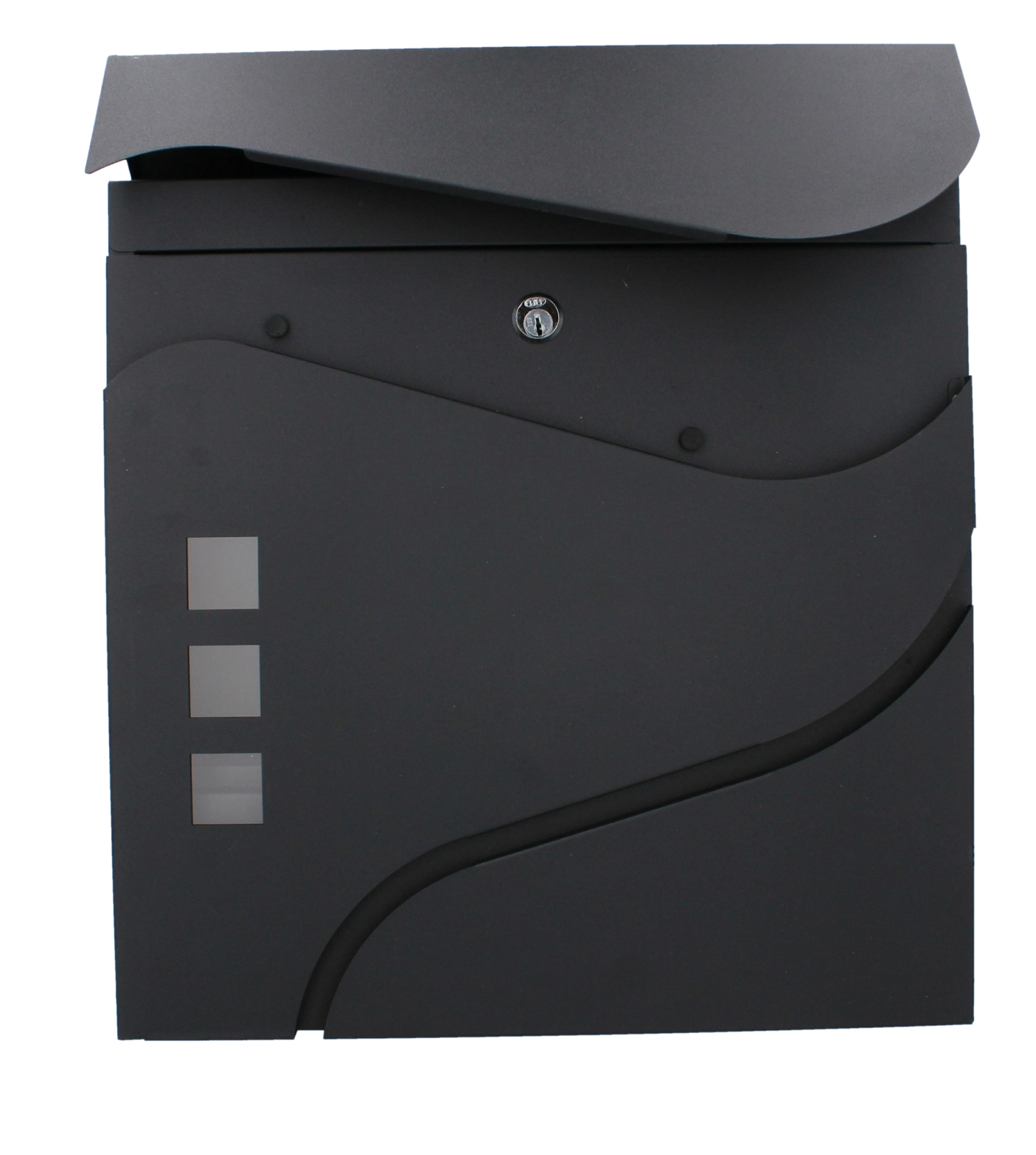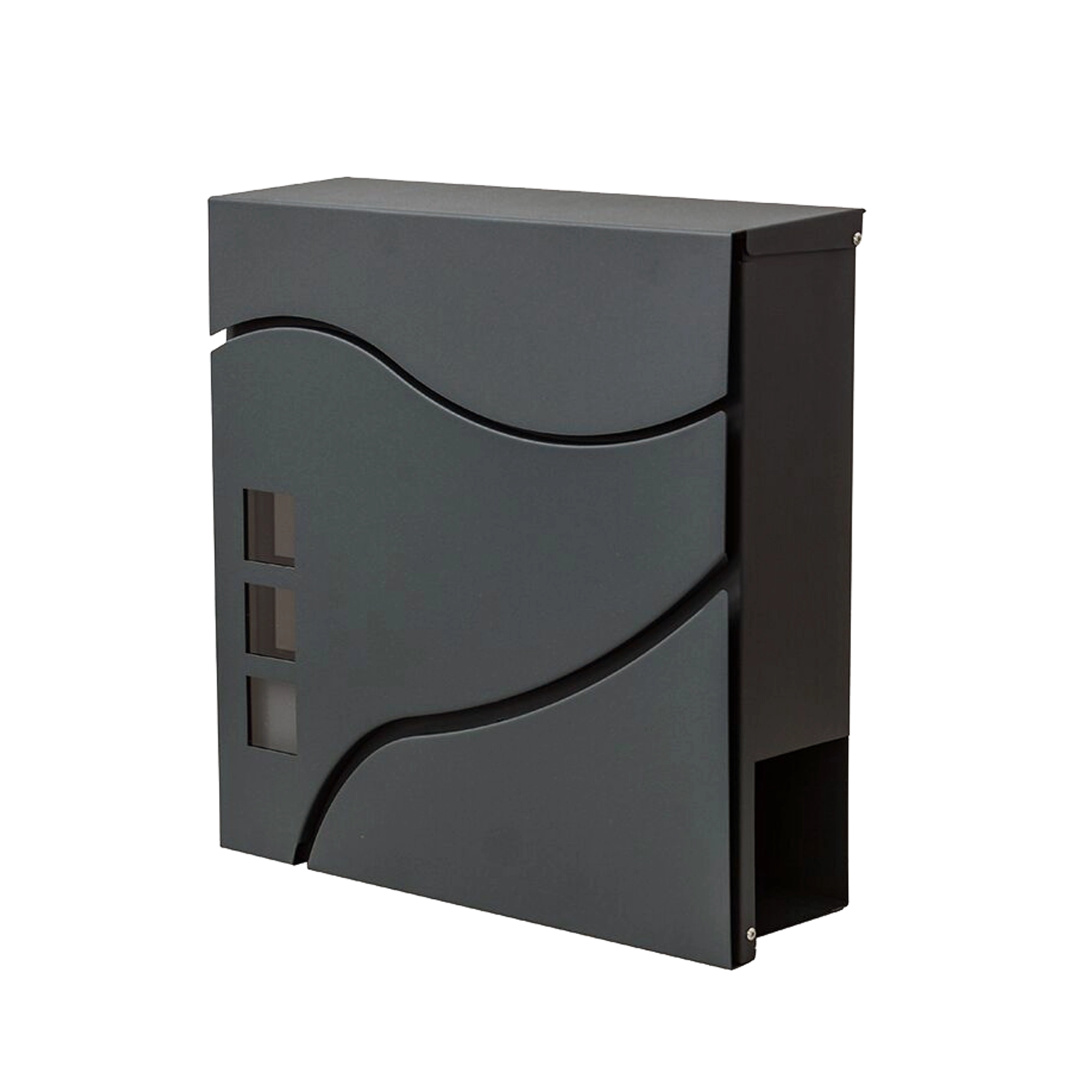 Elegancki minimalistyczny design z łagodnymi krzywiznami i trzema okienkami uzupełni nowoczesne elewacje. Praktyczna boczna lub dolna przegroda na gazety (w zależności od wariantu) umożliwia oddzielne przechowywanie druków. Montaż na ścianie jest szybki dzięki otworom pod montaż.