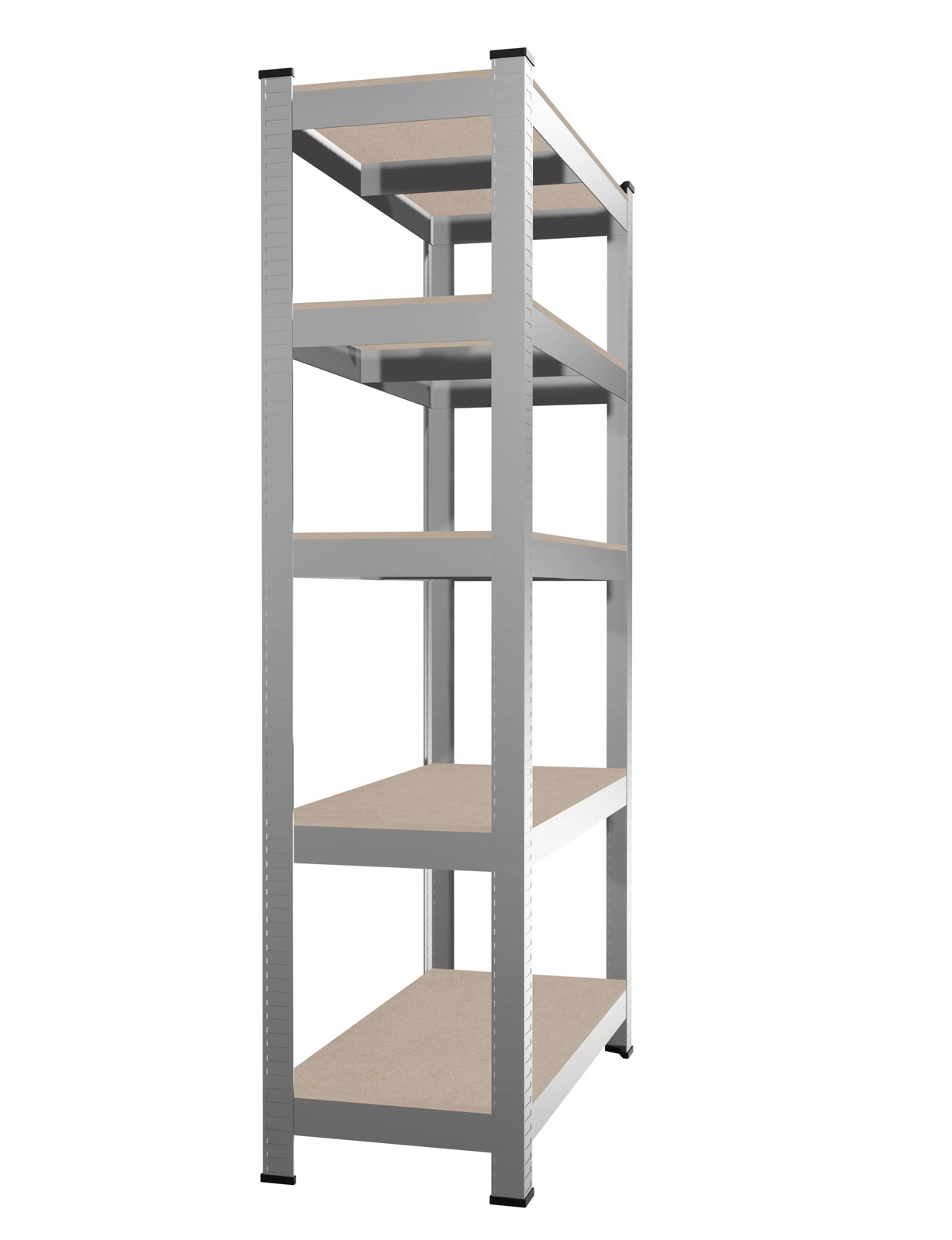 Galwanizowane profile metalowe i wzmocnienia pod każdą półką zapewniają stabilność, sztywność i długą żywotność regału.