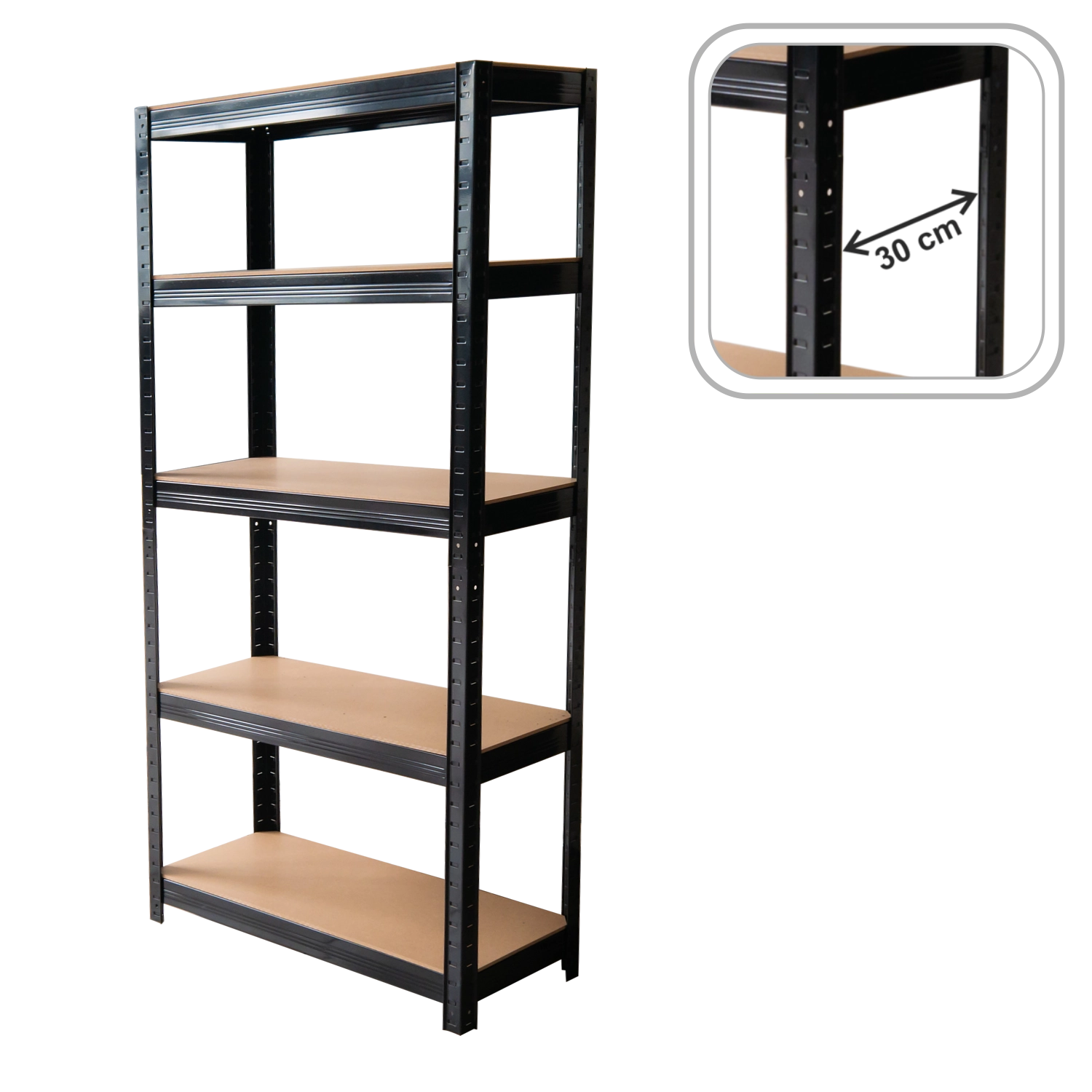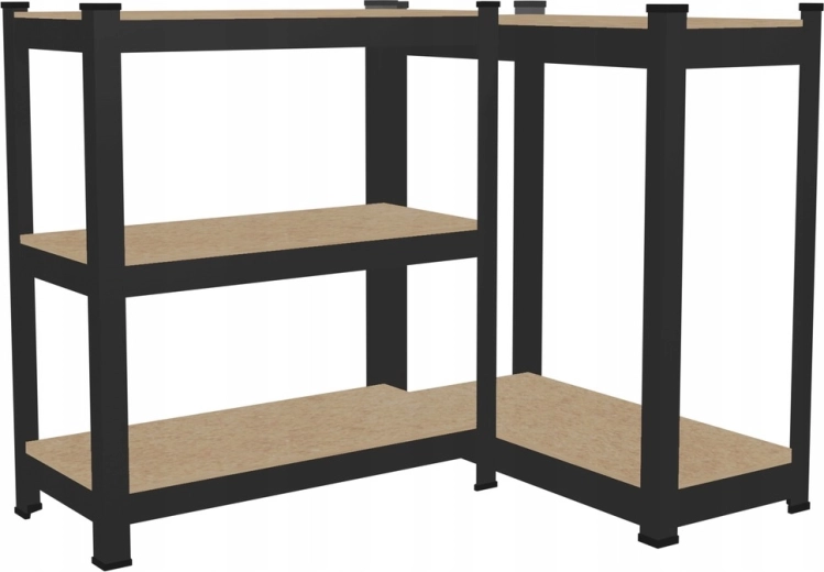 Ocynkowane profile stalowe i półki HDF gwarantują długą żywotność. Czarne wykończenie wygląda nowocześnie i pasuje do garażu, warsztatu oraz domu.