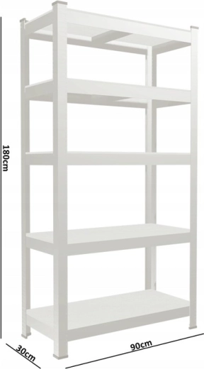 Każda półka jest wzmocniona belkami podporowymi, które zwiększają nośność i sztywność. Przy równomiernym rozłożeniu ciężaru jedna półka udźwignie do 175 kg, a cały regał do 875 kg. Montaż jest szybki i intuicyjny, więc zyskasz miejsce do przechowywania w krótkim czasie.