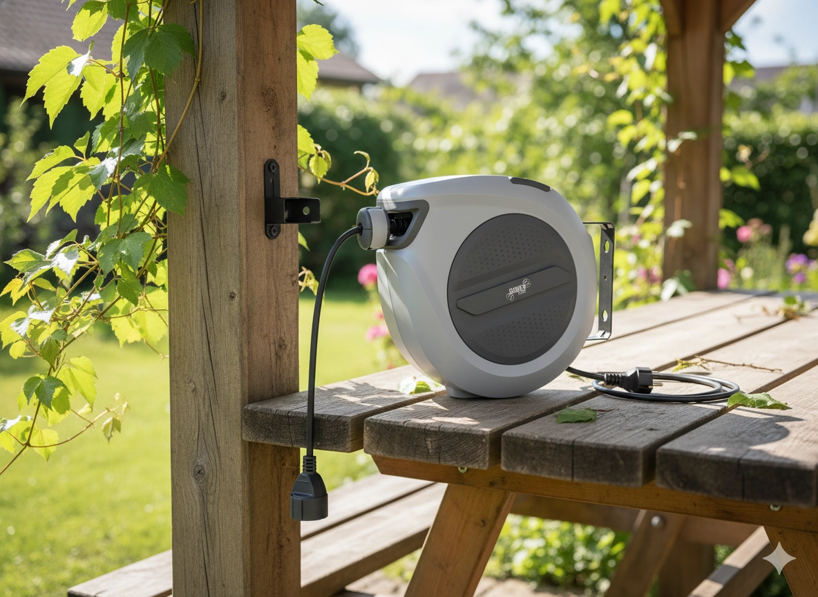 Solidna konstrukcja z obrotowym uchwytem ściennym zapewnia wygodne użycie dokładnie tam, gdzie tego potrzebujesz. Zwijarka to świetny wybór do warsztatu, garażu i ogrodu, gdzie docenisz szybkie uporządkowanie przewodu bez plątania oraz bezpieczniejsze miejsce pracy.