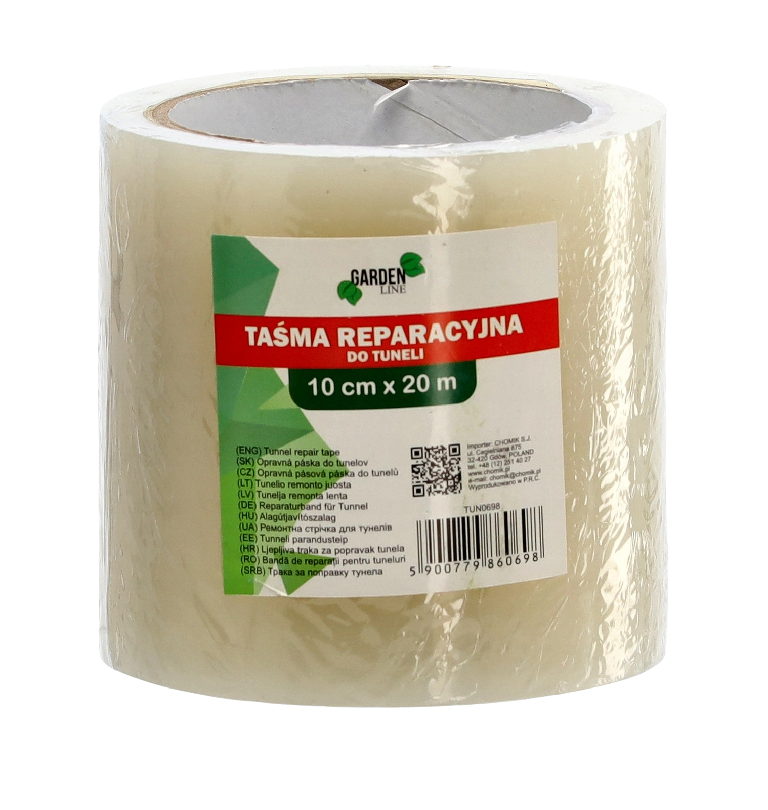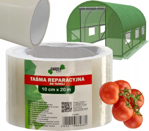 Praktyczna i wytrzymała taśma naprawcza do folii o szerokości 10 cm i długości 20 m do szybkiego uszczelniania pęknięć, dziur i nieszczelności. Dzięki mocnemu klejowi i wysokiej jakości materiałowi zapewnia niezawodną, trwałą i wodoodporną naprawę szklarni, tuneli foliowych oraz innych plastikowych powierzchni. Idealna do ogrodu i na budowę, z odpornością na promieniowanie UV i warunki atmosferyczne.